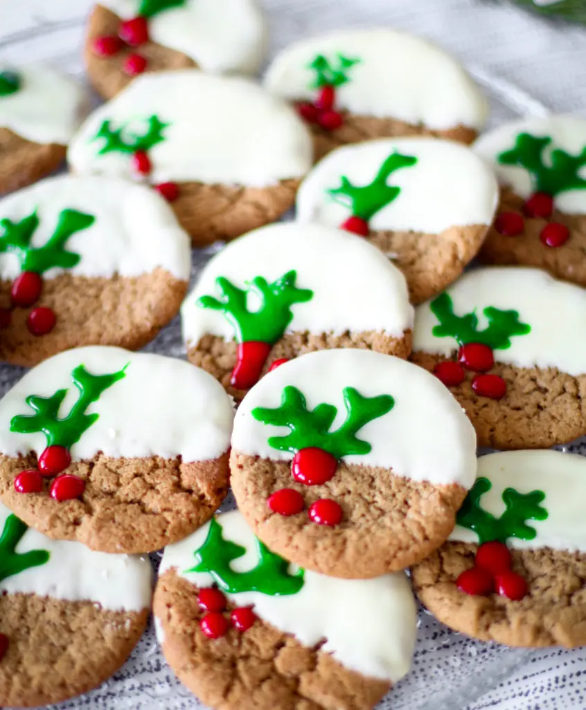 Ef þið viljið gera þessar guðdómlegu smákökur, sem fylla húsið af ilmi jólanna enn betri, þá mæli ég með að dýfa helmingnum af þeim í hvítt bráðið súkkulaði. Mikilvægt er að bræða gott hvítt gæðasúkkulaði yfir vatnsbaði svo það brenni ekki við. Takið svo köku og dýfið helmingi af henni ofan í súkkuðlaðið og leggjið beint á bökunarplötu með smjörpappa á þar til þornar. Ég vona svo að þið takið mig á orðinu og bakið þessar því þær eru svo svakalega góðar.