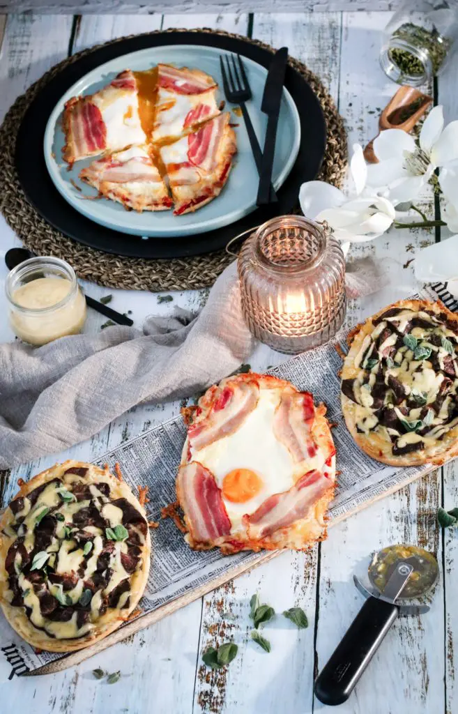 Hin sem er hér fyrir ofan er svo tilvalin morgunverðar pizza eða brunch pizza. Je minn hún var svo góð líka, með eggi og beikon.