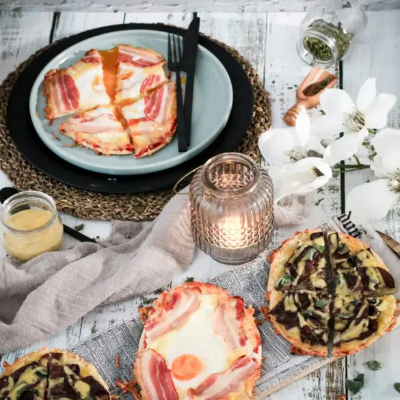Hin sem er hér fyrir ofan er svo tilvalin morgunverðar pizza eða brunch pizza. Je minn hún var svo góð líka, með eggi og beikon.