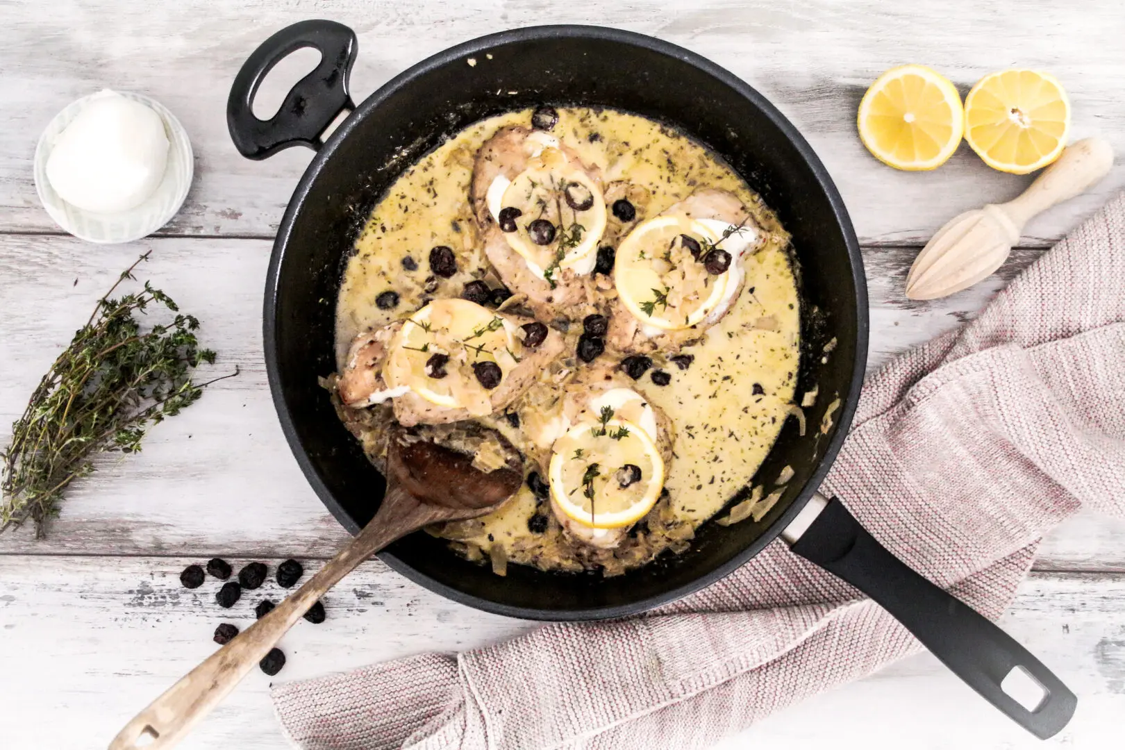 Hver elskar ekki kjúkling, fetaost og mozarella ?? Hvað þá þegar þetta er allt komið saman á eina pönnu. Dásamlega meirar bringur í bragðmikillri fetasósu með sítrónukeim og rúsínum til að vega upp á móti seltuni.