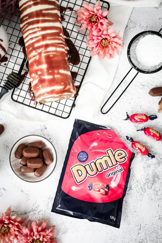 Stjarna uppskriftarinnar eru Dumle karamellurnar og silkimjúkur Philadelfia rjómaosturinn en án þeirra væri þessi kaka ekki sú sama.