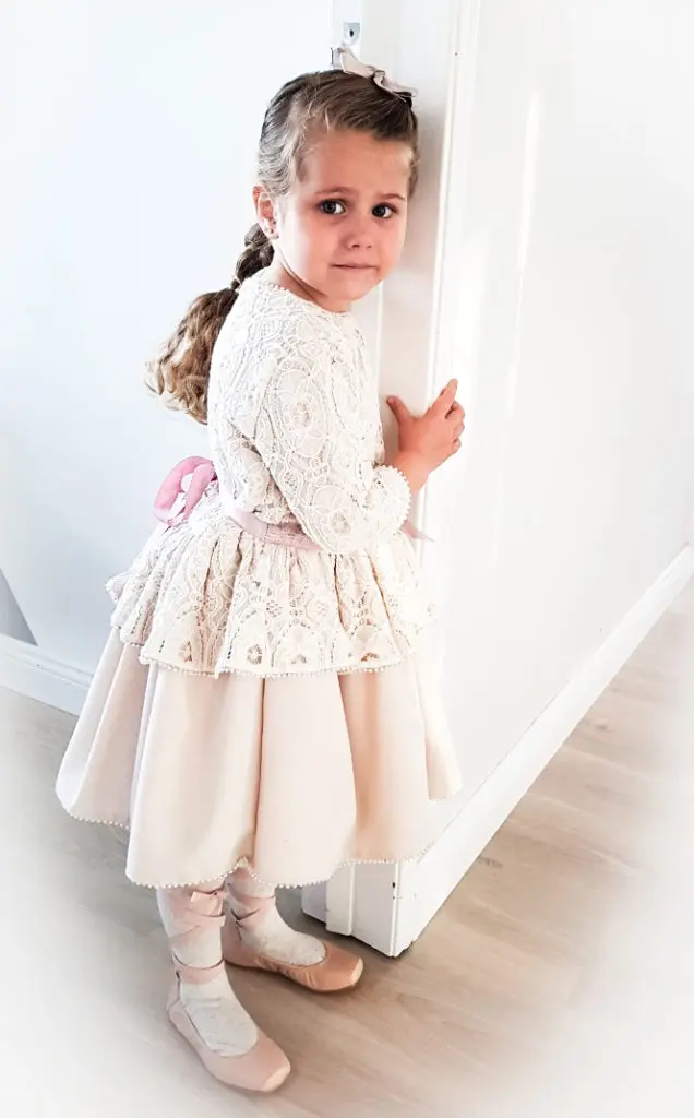 Þá báðu þau mig um að koma í samstarf við sig og gáfu mér þennan dásamlega kjól og skó á hana Ölbu mína en fallegri kjól hef ég ekki séð.