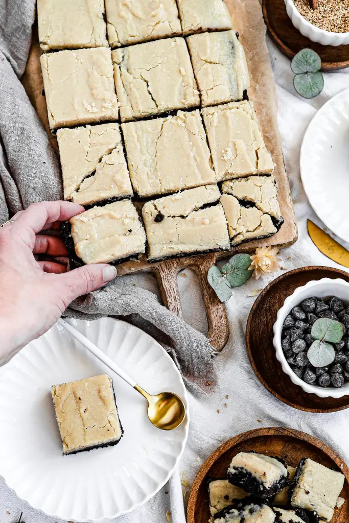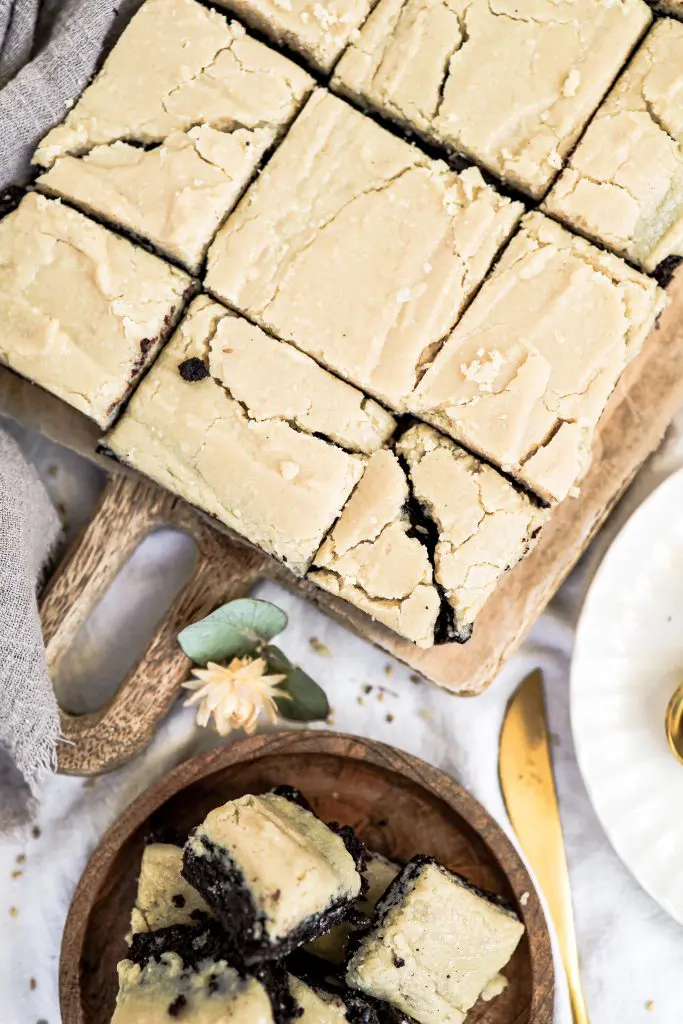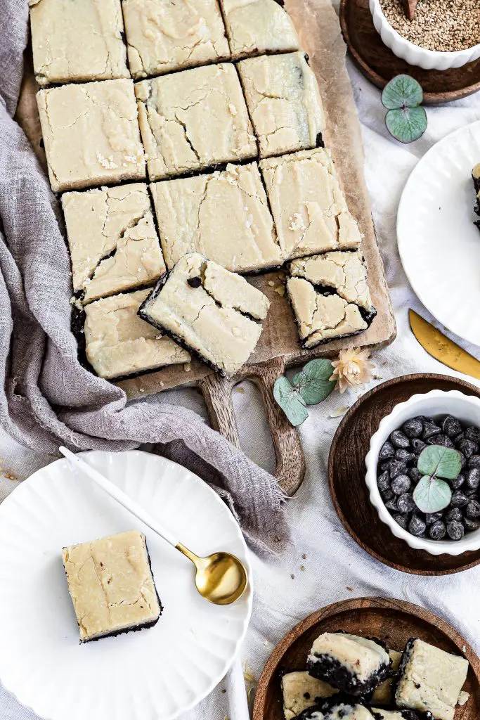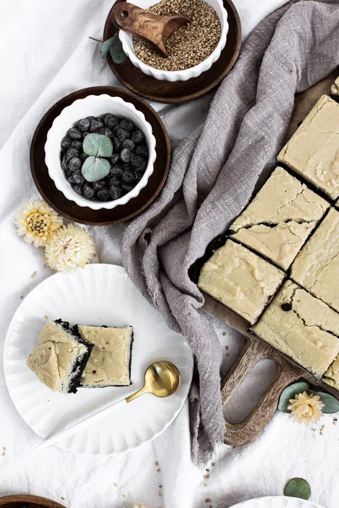 Halva er mið-austurlenskt sælgæti sem er gert úr tahíni, eða sesammauk. Halva gefur kökunum dásamlegan sætan hnetukeim.