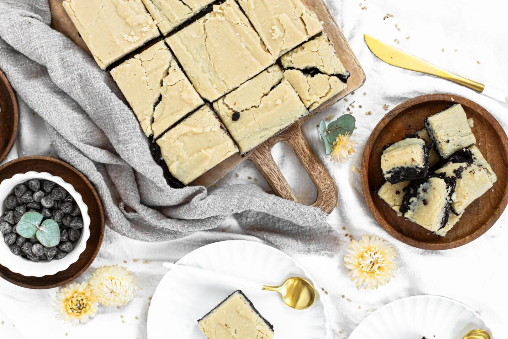 Halva er mið-austurlenskt sælgæti sem er gert úr tahíni, eða sesammauk. Halva gefur kökunum dásamlegan sætan hnetukeim.