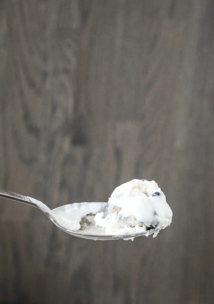 Ísinn sjálfur er síðan fáranlega auðveldur að gera og inniheldur ekki nema 4 innihaldssefni. Hann helst mjúkur þrátt fyrir að vera í frystir og því auðvelt að móta úr honum kúlur.