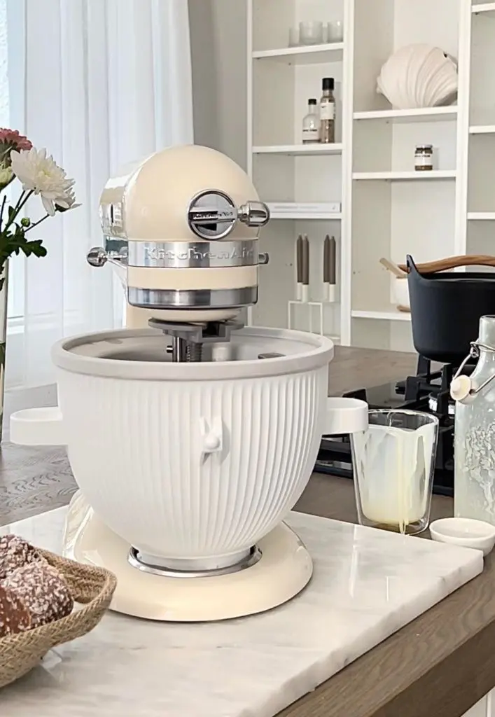Það er algjör snilld að eiga ísgerðarskál á Kitchen Aid hrærivélina sína til að gera ís á einungins 30 mínútum.