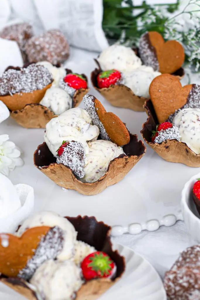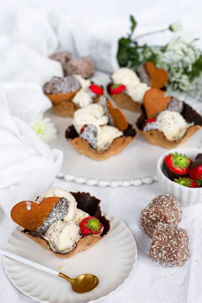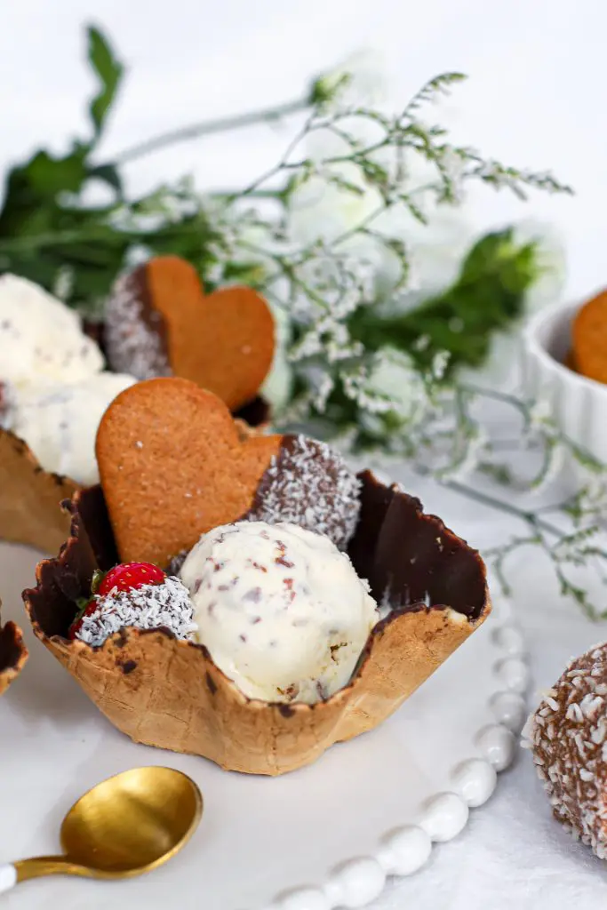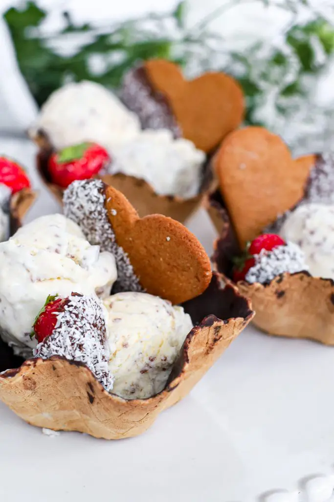 Hér gerði ég ofureinfaldan kókósbolluís með einungins 4 hráefnum en hann er algjörlega eggjalaus og því þarf ekki að óttast hrá egg.