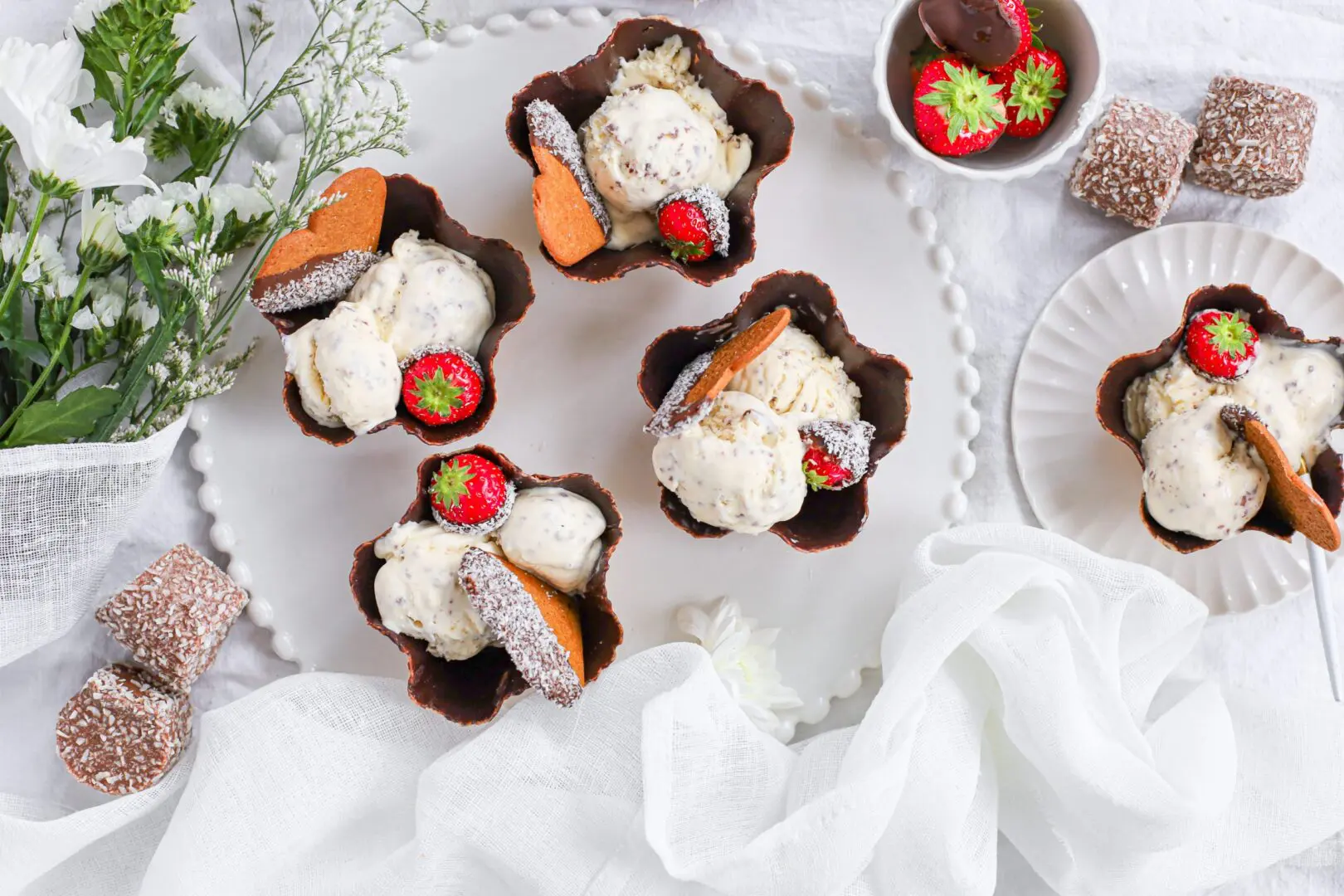 Hér gerði ég ofureinfaldan kókósbolluís með einungins 4 hráefnum en hann er algjörlega eggjalaus og því þarf ekki að óttast hrá egg.