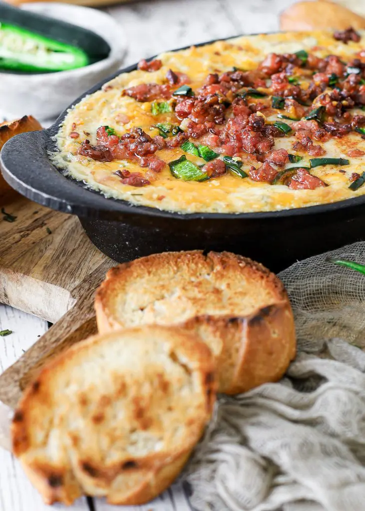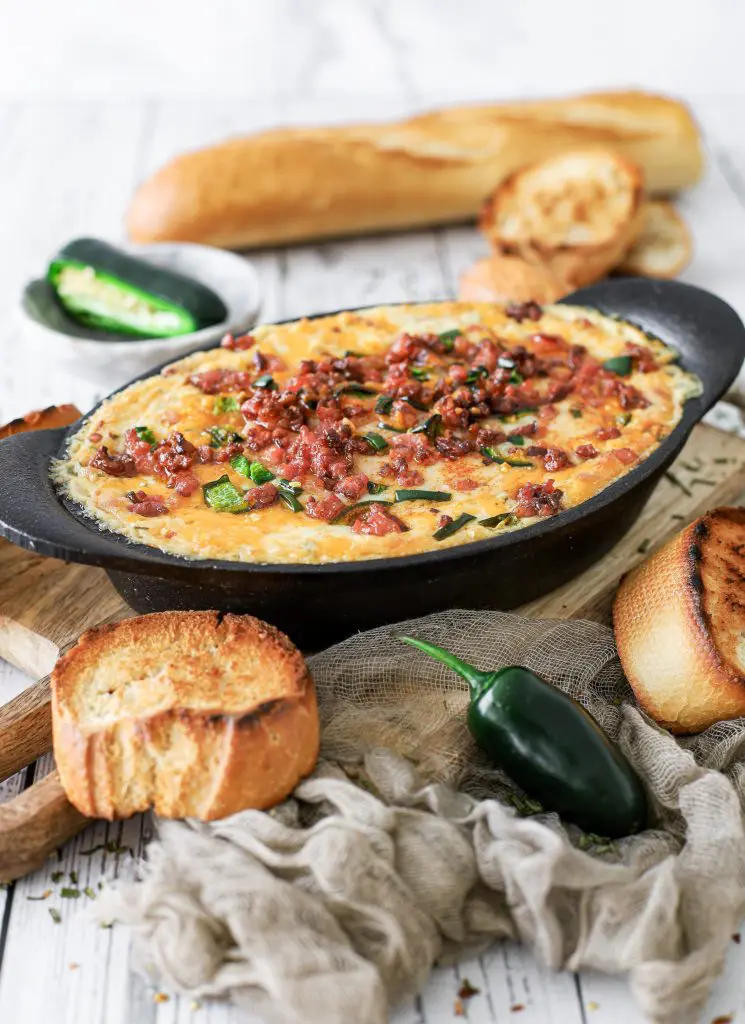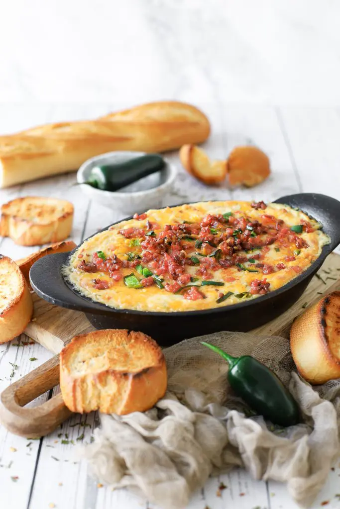 Ef þú ert eðlu unnandi þá er þessi heita og dásamlega bragðmikla ídýfa málið fyrir þig. Með ristuðu baguette, nachos eða bara því snakki sem þú elskar.
