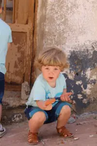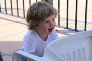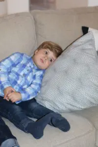 Reynir Leo stóri bróðir fær að kíkja í herbergið hjá Mikael að leika.