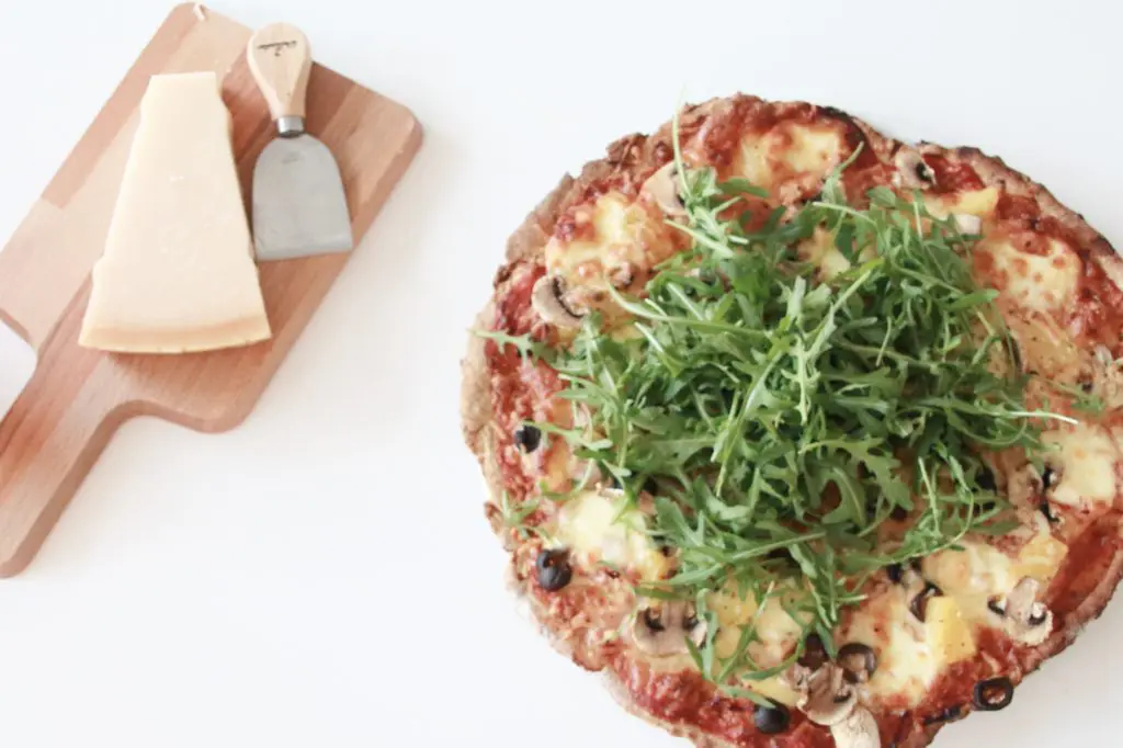Pizzabotninn er úr spelti en ef þið viljið, þá má alveg skipta speltinu út fyrir hveiti. Það er mjög einfalt og fljótlegt að gera þessa pizzu og það þarf ekki að eltast við heilsubúðir til að fá hráefnið í botnin. Allt fæst í Bónus. Uppskriftin dugir í einn 16 tommu botn eða tvo þunnbotna 9-12 tommu botna. Mér persónulega finnst betra að hafa hana þunnbotna. Athugið að ég set hráskinkuna ofan á pizzuna áður en hún er bökuð en ekki kalda eftir á. Þannig verður hún stökk og sölt og gefur rosa gott bragð.