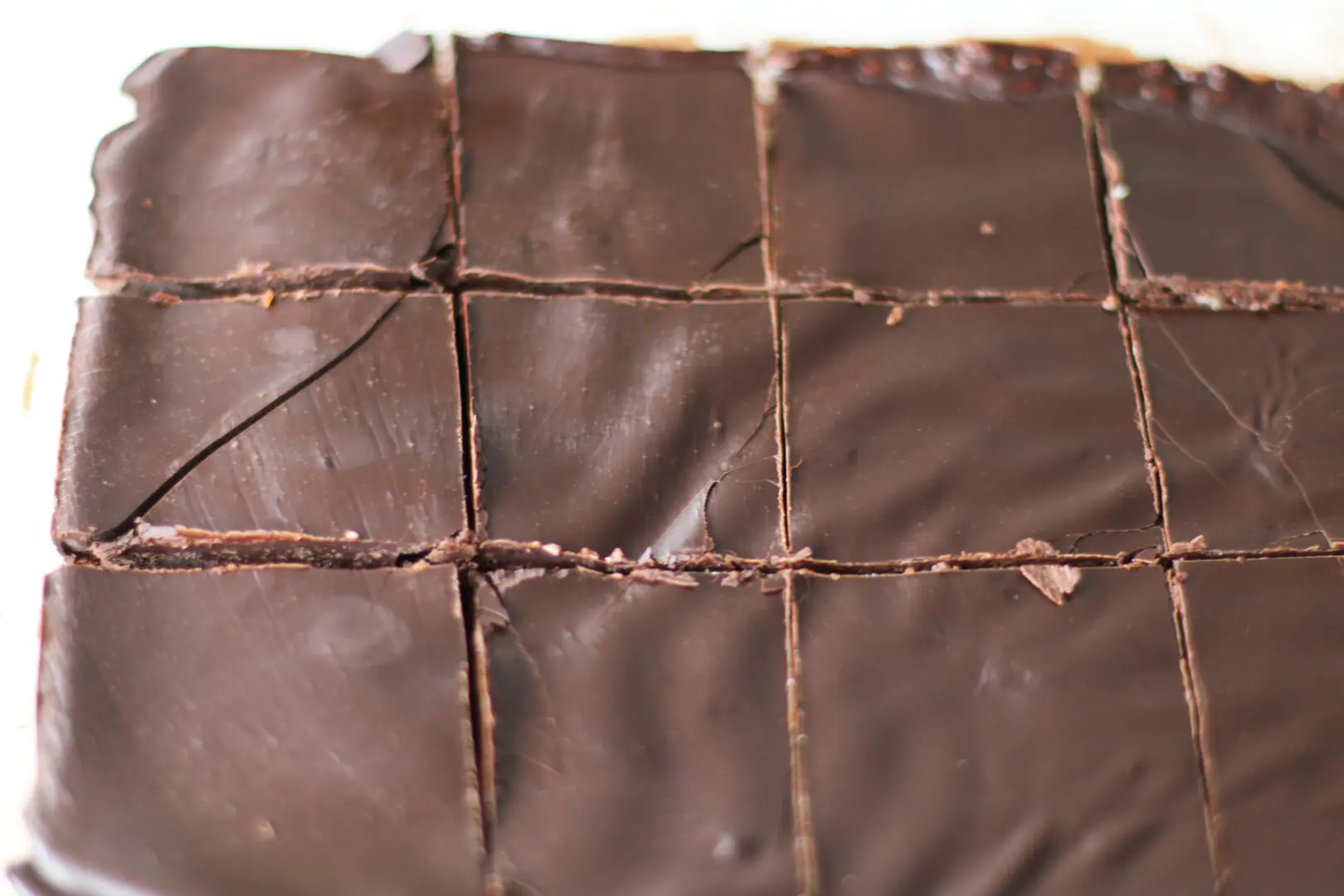 - Svo er að hræra vel, en ég nota alltaf gaffal við það, þar til það verður silkimjúkt og glansandi. Passið samt að hræra það ekki of mikið því þá getur það orðið að þykkri klessu.Svo að lokum er að hella súkkulaðinu/kreminu yfir botninn og setja í frysti í svona 15 mín.