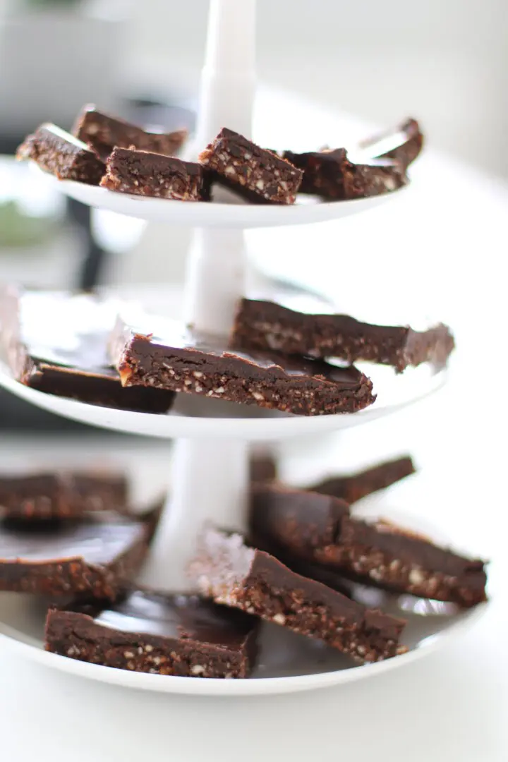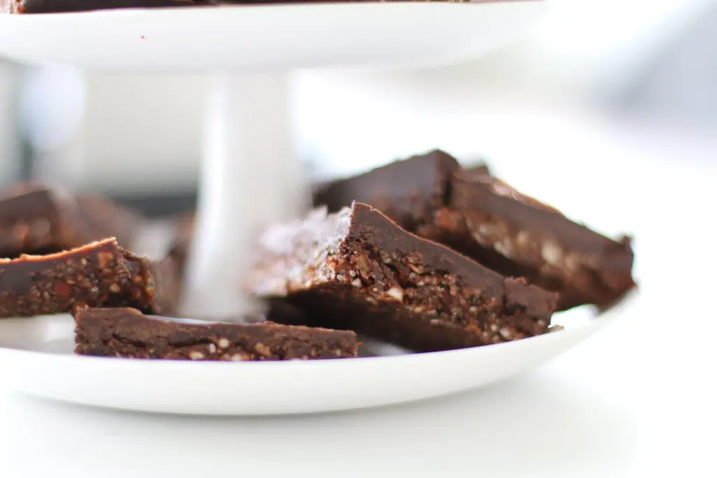 Möndlurnar eru mjög kalkríkar, döðlurnar innihalda trefjar og eru ríkar af járni og svo er kókósolía sem á að vera mjög góð fyrir meltingarveginn. Það getur því ekki verið annað en hollt að borða eina svona góða sneið á dag.
