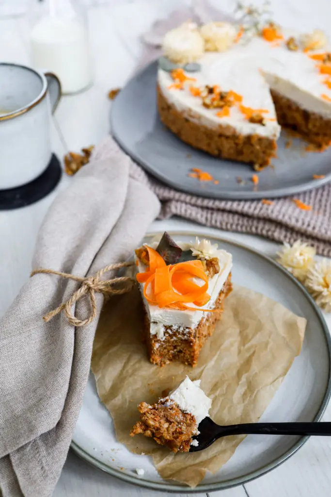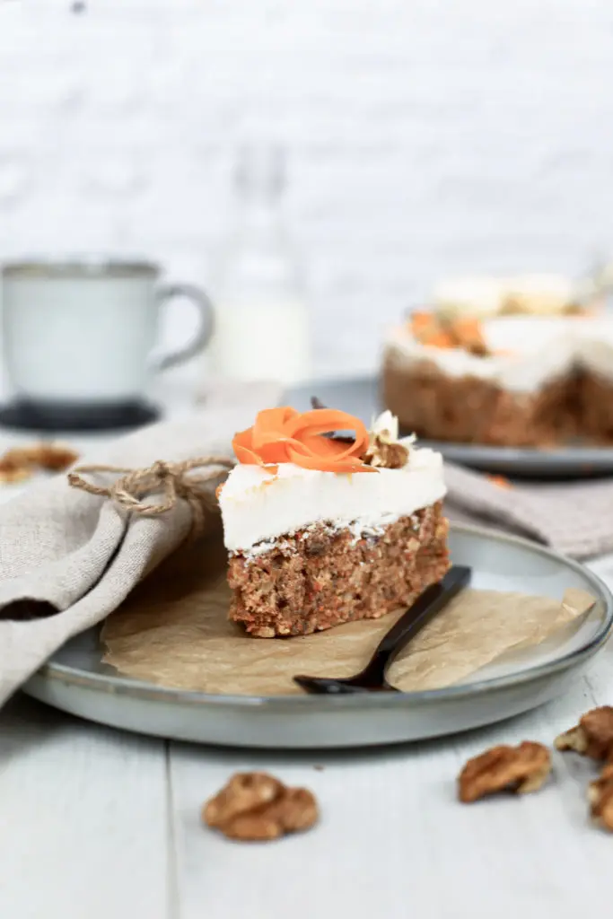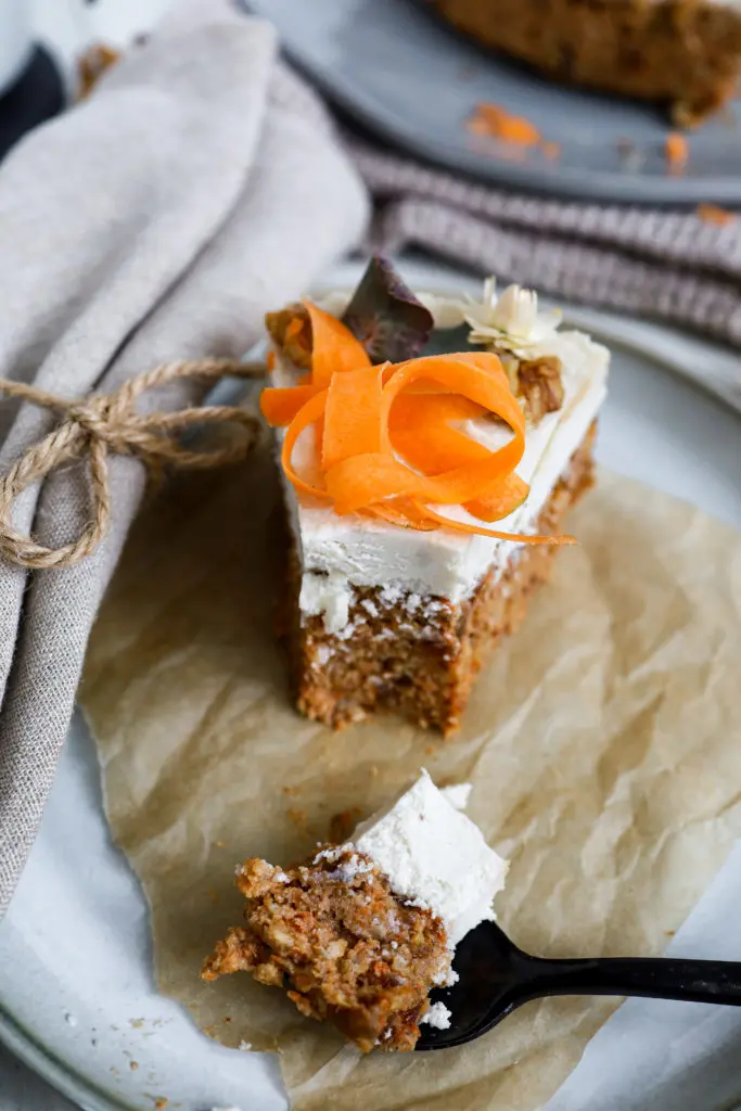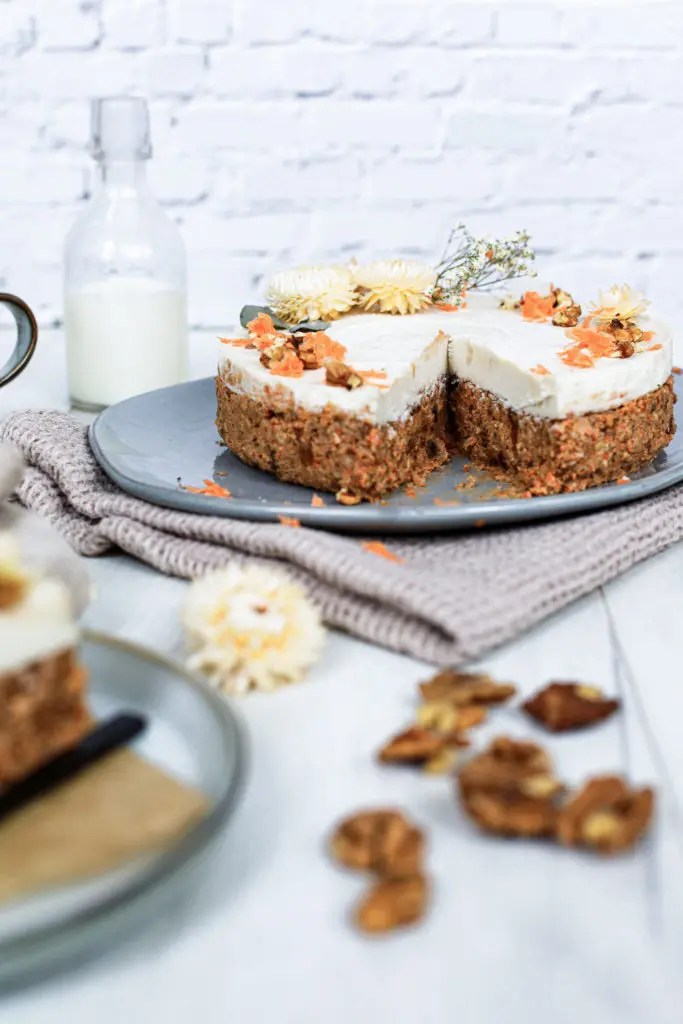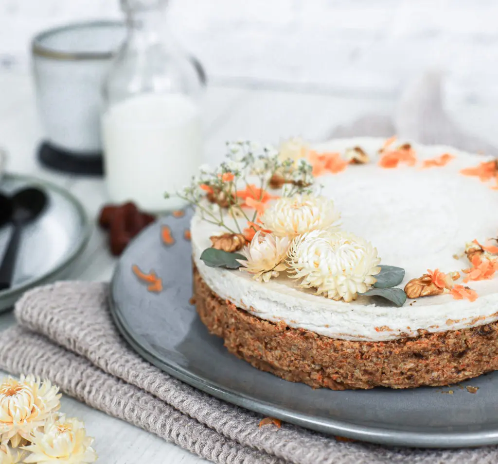 Kakan er nánast 100 % lífræn. Hún er samt ekki bara fyrir þá sem eru vegan heldur fyrir alla sælkera sem elska góðar gulrótarkökur.