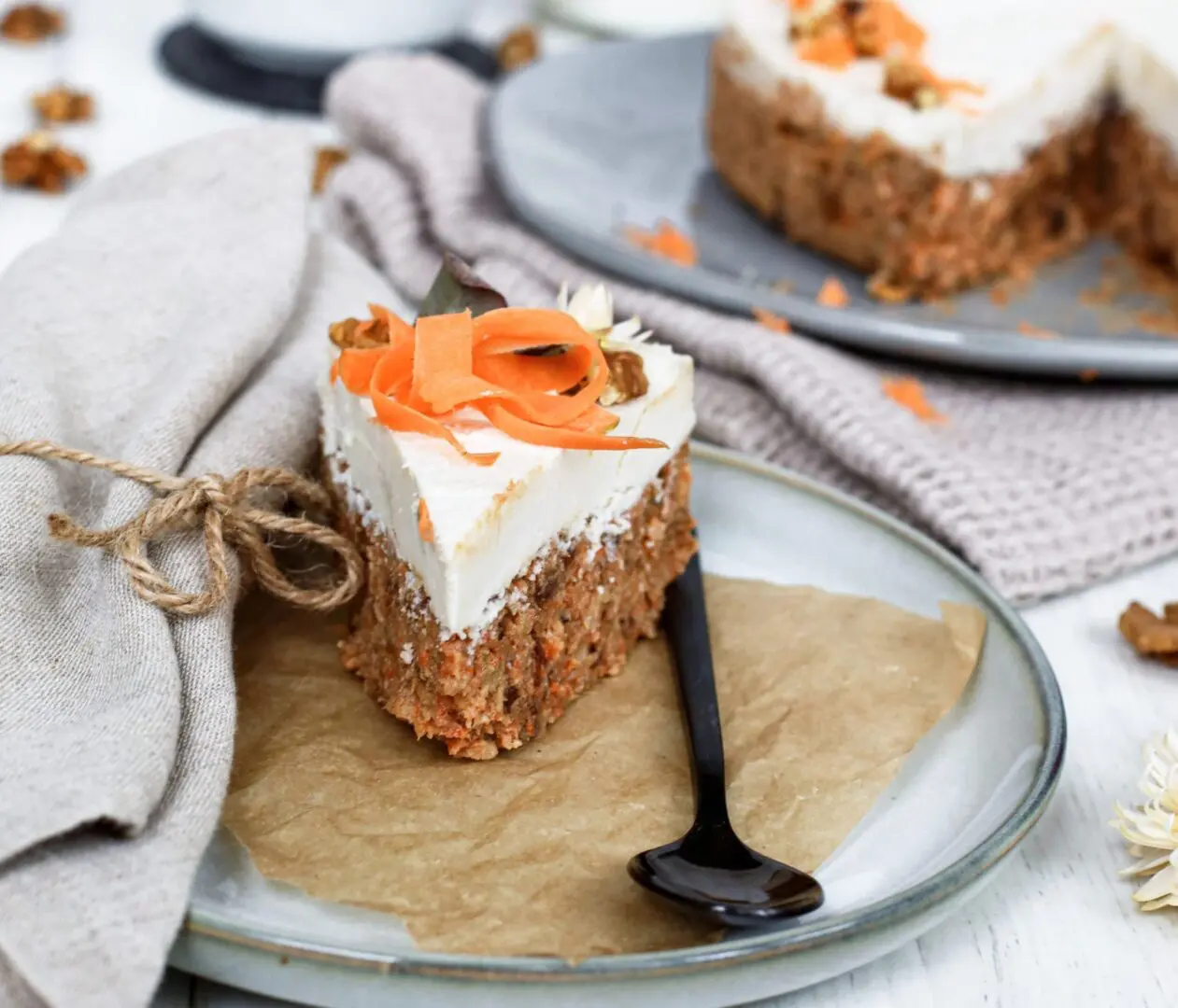 Kakan er nánast 100 % lífræn. Hún er samt ekki bara fyrir þá sem eru vegan heldur fyrir alla sælkera sem elska góðar gulrótarkökur.