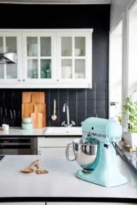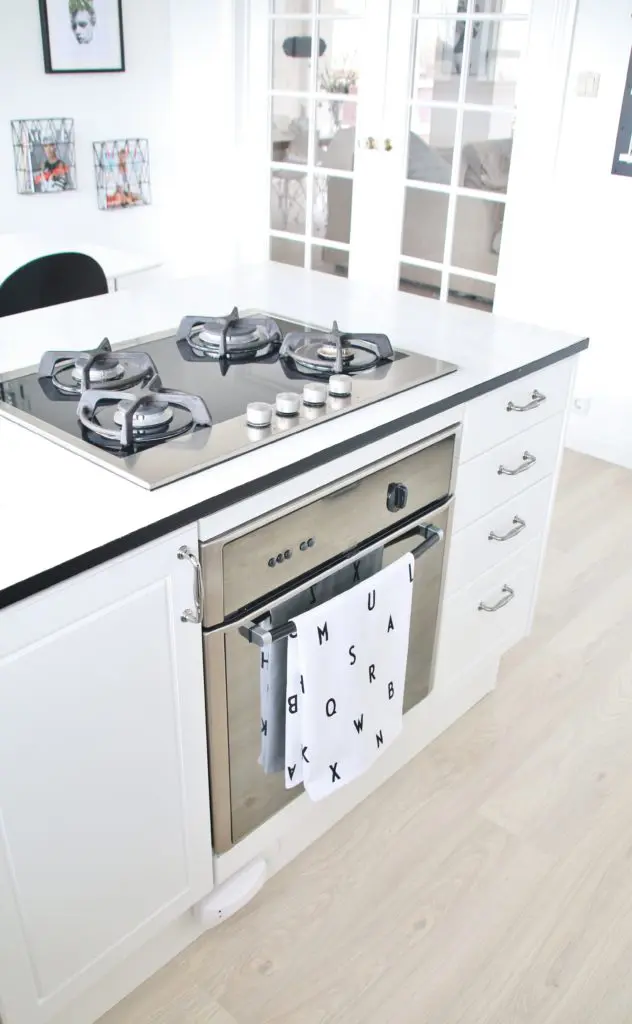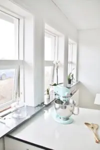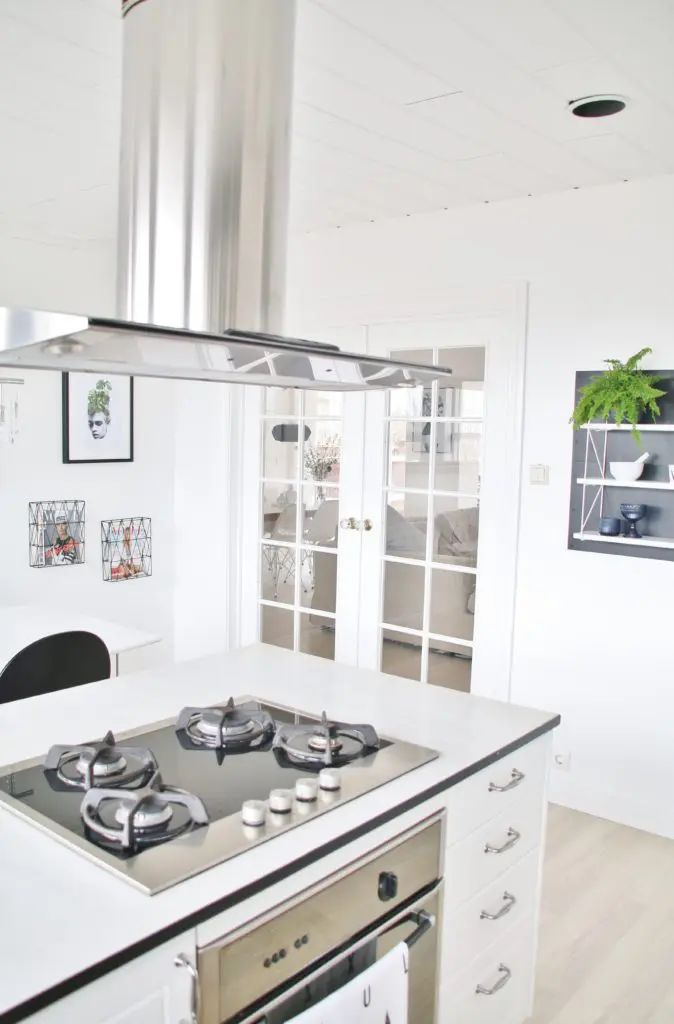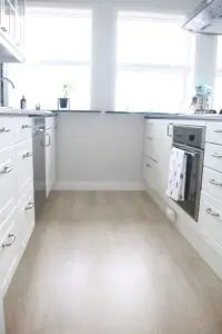 Núna er eldhúsið okkar búið að vera svona í tæpt ár og það er ekkert byrjað að flagna af skápunum og heldur lakkið sér mjög vel. Mér finnst þetta hafa verið alveg þess virði að fara út í þessa vinnu en það er hægt að gjörbreyta rýmum með málningu einni saman. Þess vegna hvet ég ykkur til að skoða hvort að það að lakka gamla innréttingu sé ekki málið áður en öllu er hent út og allt keypt nýtt 😉