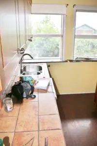 Við spöruðum eins og við gátum þegar kom að eldhúsinu og þess vegna kom aldrei til greina að fara með innréttinguna á sprautuverkstæði til að láta sprautulakka hana. Sérstaklega ekki þegar um bráðabirgðaeldhús væri að ræða.