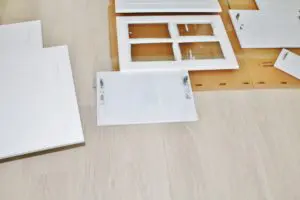 Það fyrsta sem þið þurfið að gera þegar byrjað er að lakka er að taka alla fronta af skápunum. Alls ekki lakka hurðir skrúfaðar á, það er bara ávísun á klúður.
