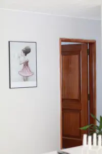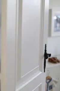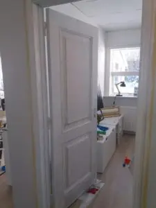 Málningarvinnan sjálf var ekkert leiðinleg en hún er mikið nákvæmnis og þolinmæðisverk. Ég ætla að fara yfir það skref fyrir skref hvað þarf að gera til að lakka hurðir. Hjá mér eru svokallaðar fulningahurðir, en það eru hurðir með svona ramma inni í og listum. Mér finnst þær stórglæsilegar og setja þær mikinn svip hérna inni.