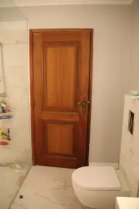 Þegar ég horfi á hurðinar hjá mér þá finnst mér þær alveg eins geta verið sprautaðar enda vönduðum við okkur alveg rosalega við að lakka þær. Einnig fylltum við í allar línur með akrýlkítti sem voru á milli veggs og hurðakarma,en karmar eiga það oft til að gapa smá frá veggjum.