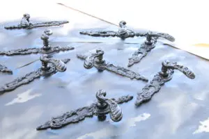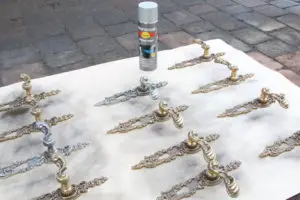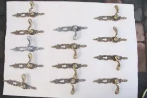 Við tókum þá alla af meðan verið var að mála hurðirnar. Svo lagði ég þá í bleyti, ofan í baðkarið hjá mér í sjóðandi heitt vatn með uppþvottalög. Ég lét þá liggja þar ofan í í einhvern tíma. Svo skolaði ég burt allt sápuvatn og lét þá þorna á gólfinu ofan á handklæði.