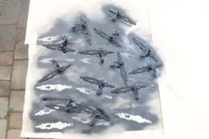 Svo eru húnarnir spreyjaðir með möttu svörtu spreylakki tvær umferðir.