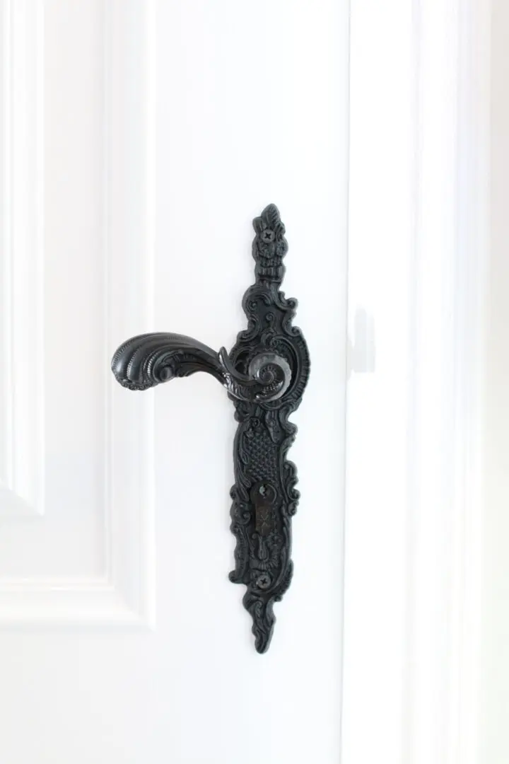 Hurðahúnarnir hafa eitthvað smá Goth yfirbragð á sér sem mér finnst mjög flott og ekki gera hurðirnar eins væmnar og annars