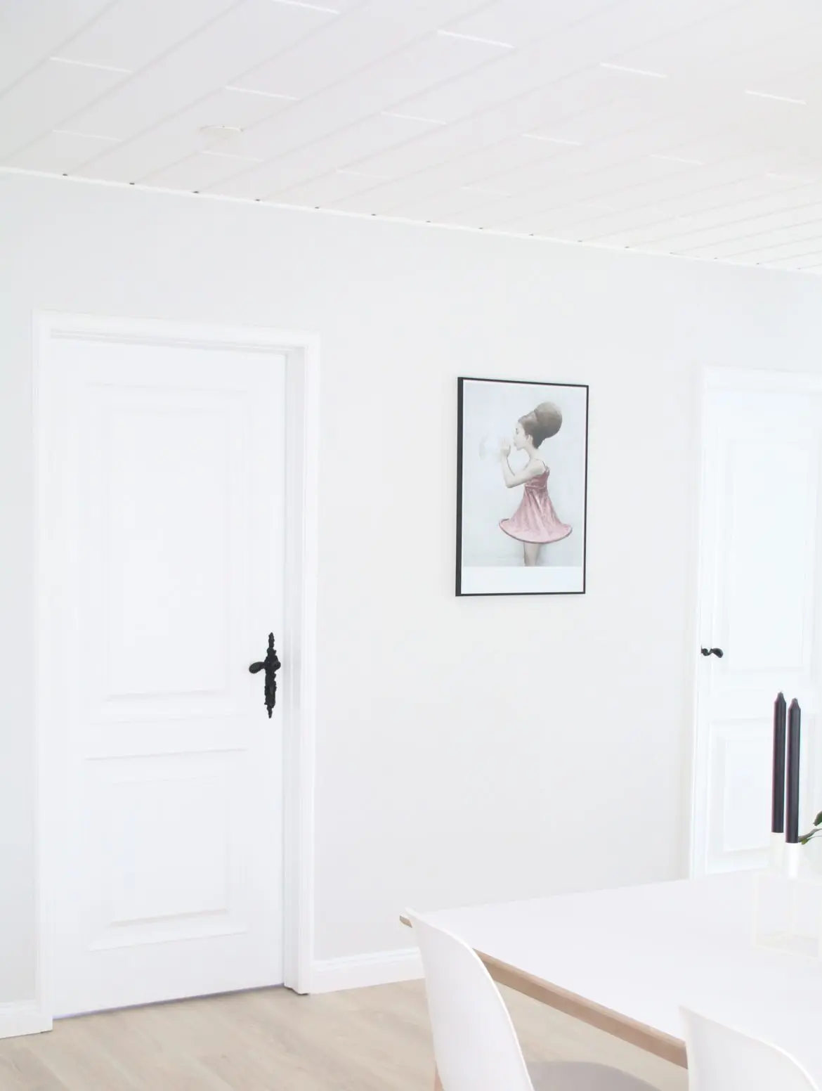 Málningarvinnan sjálf var ekkert leiðinleg en hún er mikið nákvæmnis og þolinmæðisverk. Ég ætla að fara yfir það skref fyrir skref hvað þarf að gera til að lakka hurðir. Hjá mér eru svokallaðar fulningahurðir, en það eru hurðir með svona ramma inni í og listum. Mér finnst þær stórglæsilegar og setja þær mikinn svip hérna inni.