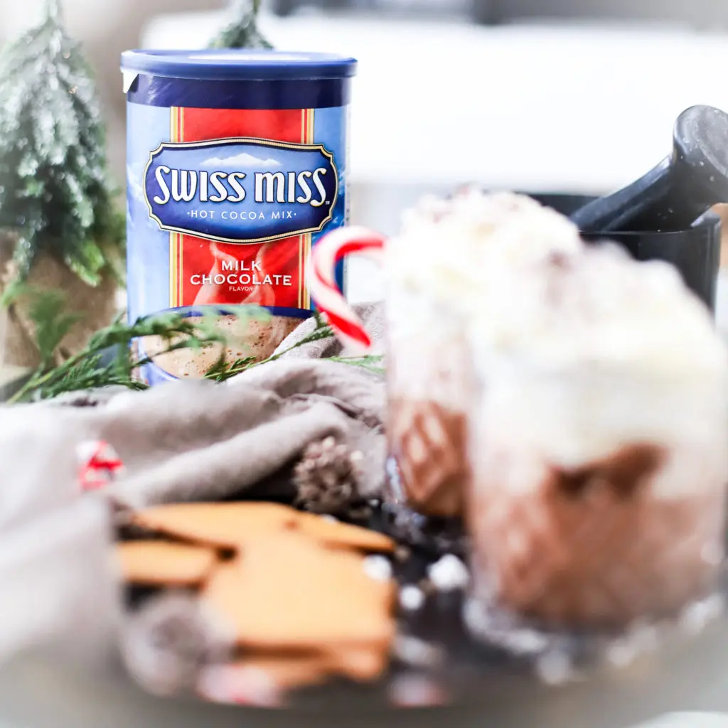 Swiss Miss hefur fylgt okkur um árabil og hér er það poppað örlítið upp með því að setja það í sparibúning og krydda það ögn með jólakryddunum þremur.