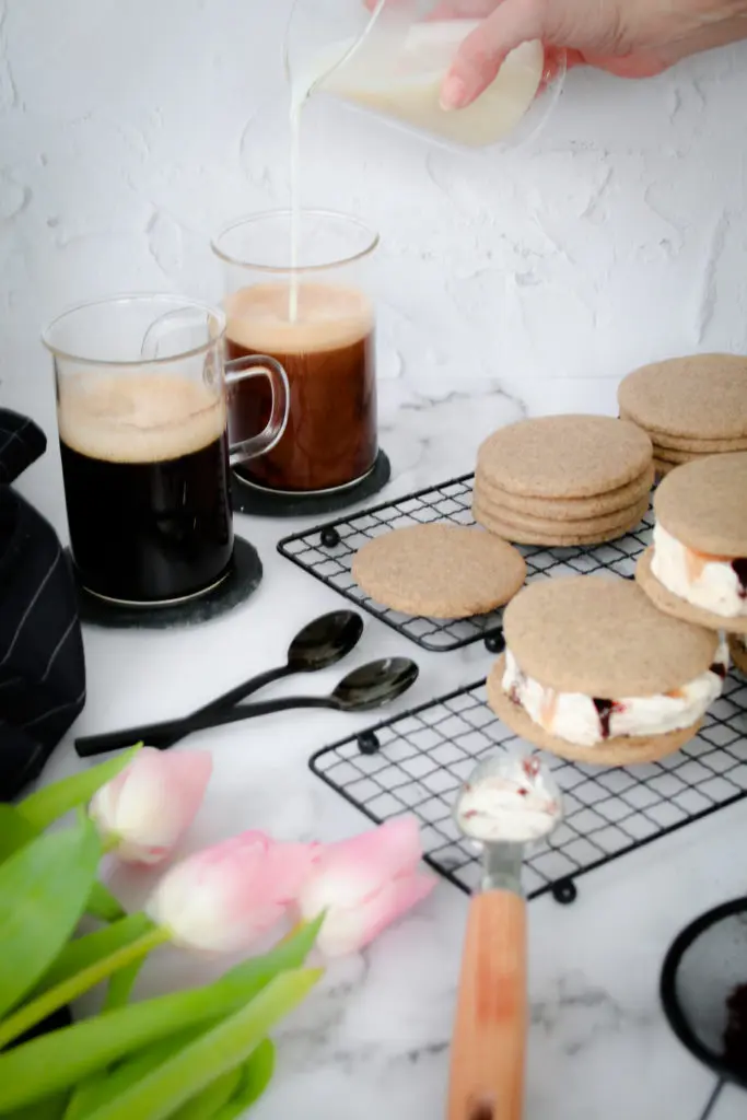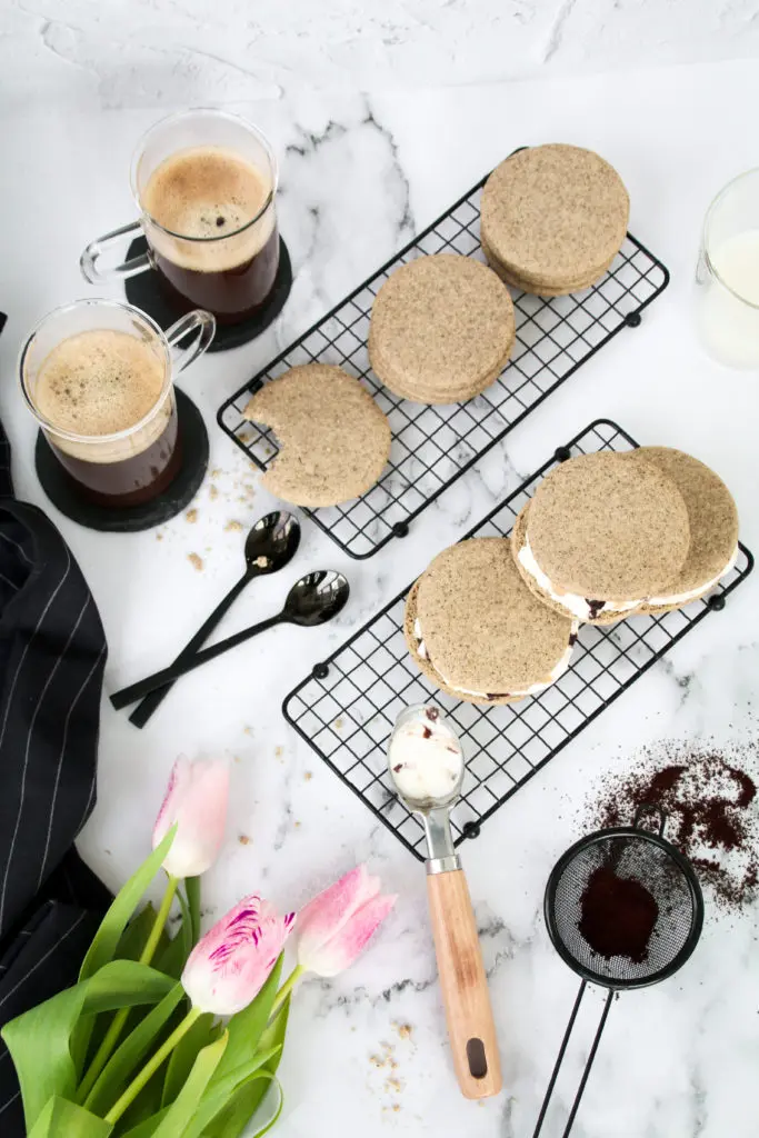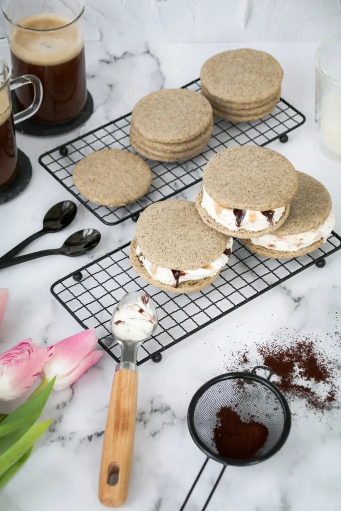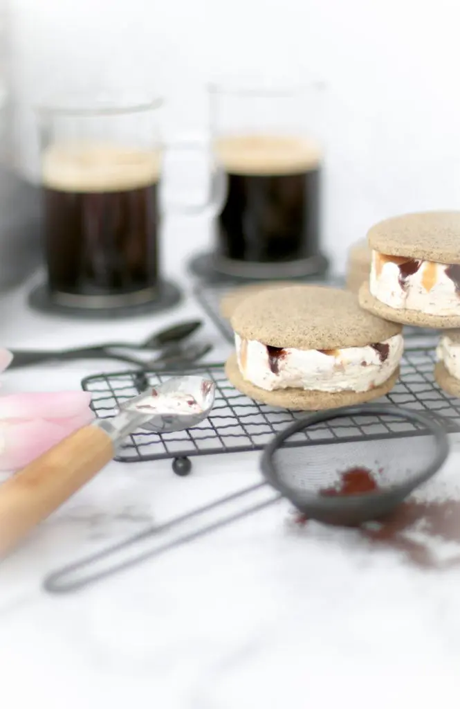 Kaupið þá ykkar uppáhalds ís og setjið á milli tveggja kaka og smá stund í frystir. Kaffi íssamloka með kaffinu klikkar ekki og er þetta ekta fyrir þá sem elska gott kaffi og með því.