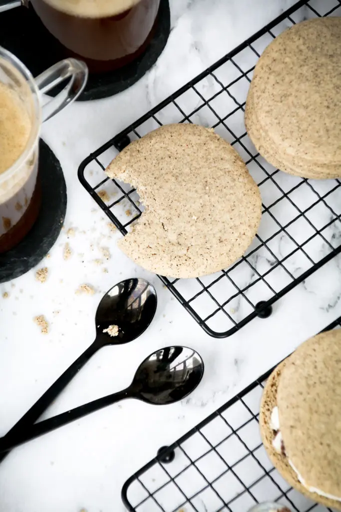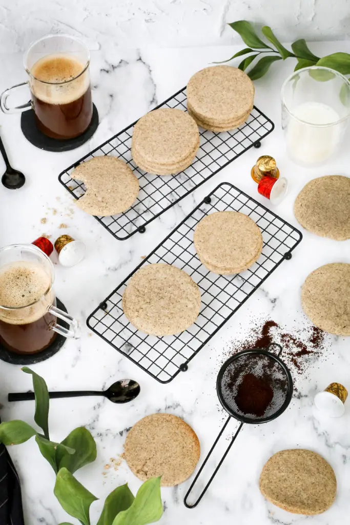 Já þið lásuð rétt duftið er notað í kökurnar og trúið mér það gerir töfra. Milt og gott kaffibragðið læðist í gegnum stökkar kökurnar með mjúkri miðjunni.