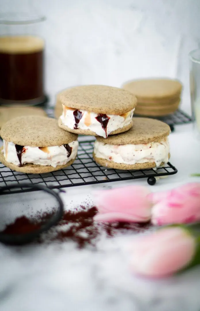 Kaupið þá ykkar uppáhalds ís og setjið á milli tveggja kaka og smá stund í frystir. Kaffi íssamloka með kaffinu klikkar ekki og er þetta ekta fyrir þá sem elska gott kaffi og með því.