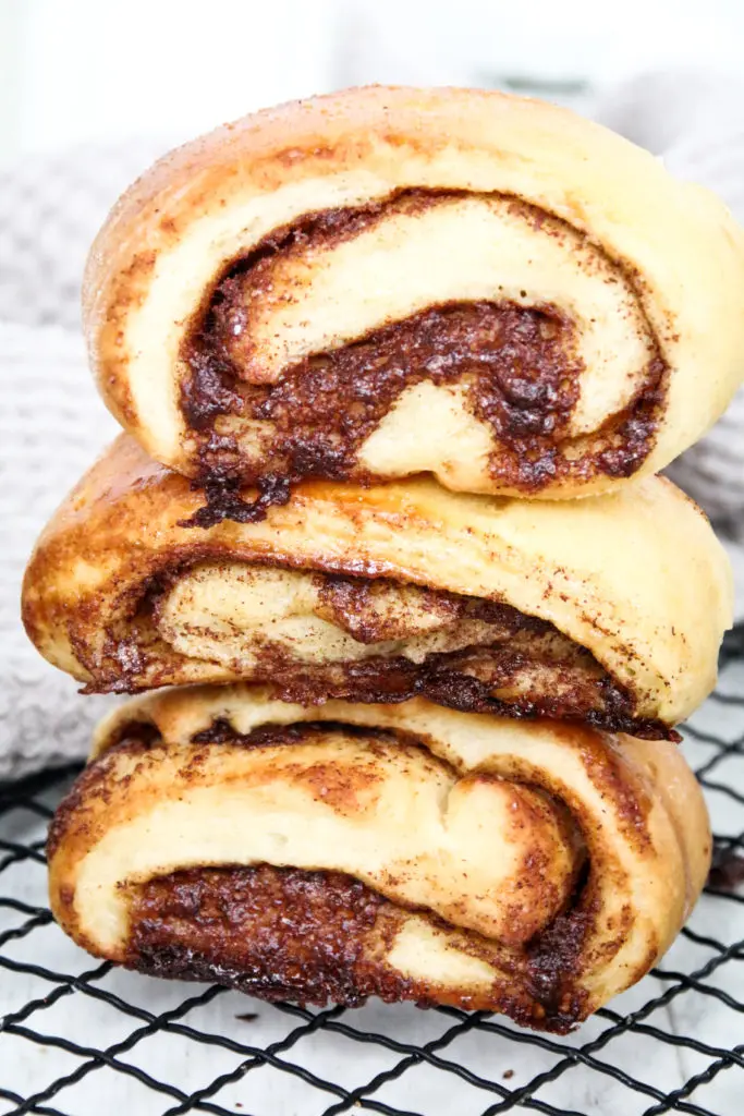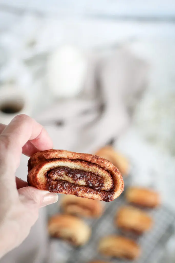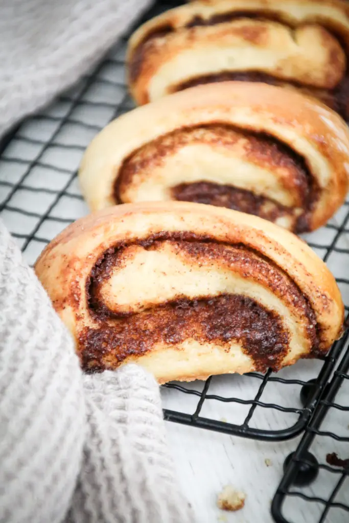 Bragðið, áferðin og formið á þeim gerir þá frábrugðna hefðbundnum kanilsnúðum en þessir eru stökkir að utan og dúnmjúkir að innan.