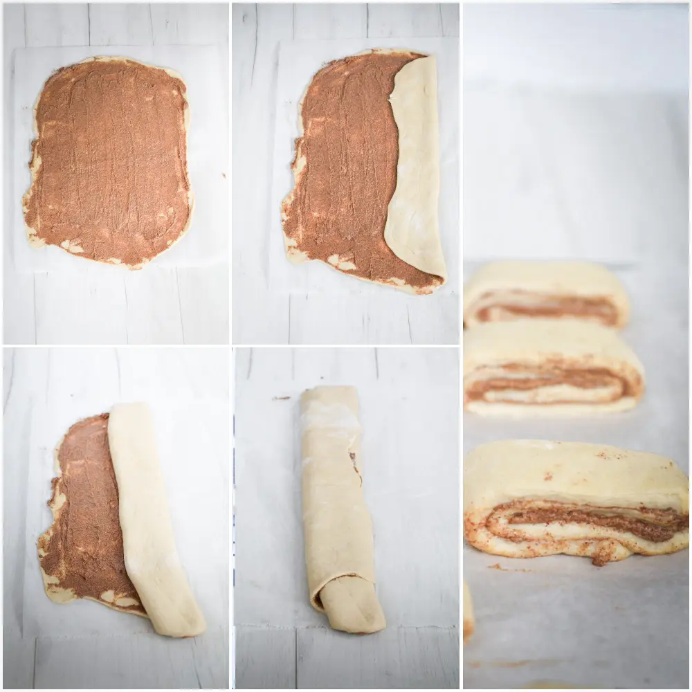 - Svo í stað þess að rúlla upp eins og með hefðbundna kanilsnúða legg ég deigið bara inn að næstum miðju og svo þannig aftur svo það sé svona flatt