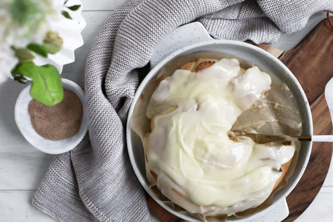 Í þetta sinn þá ákvað ég að gera kanilsnúðaköku með skálinni, kanilsnúðakaka er í raun bara einn risastór kanilsnúður sem maður sker í sneiðar.