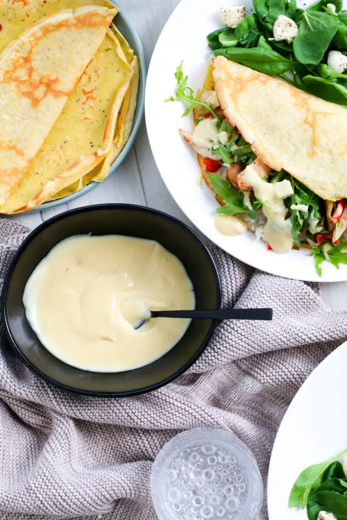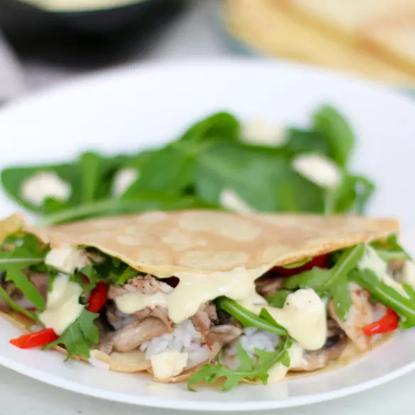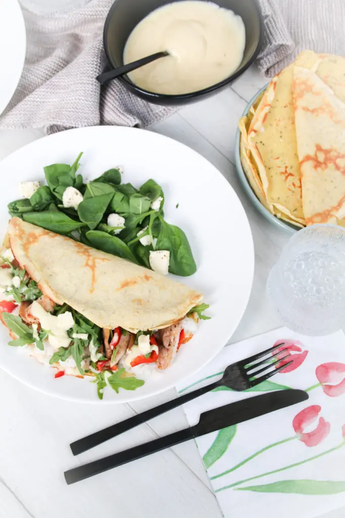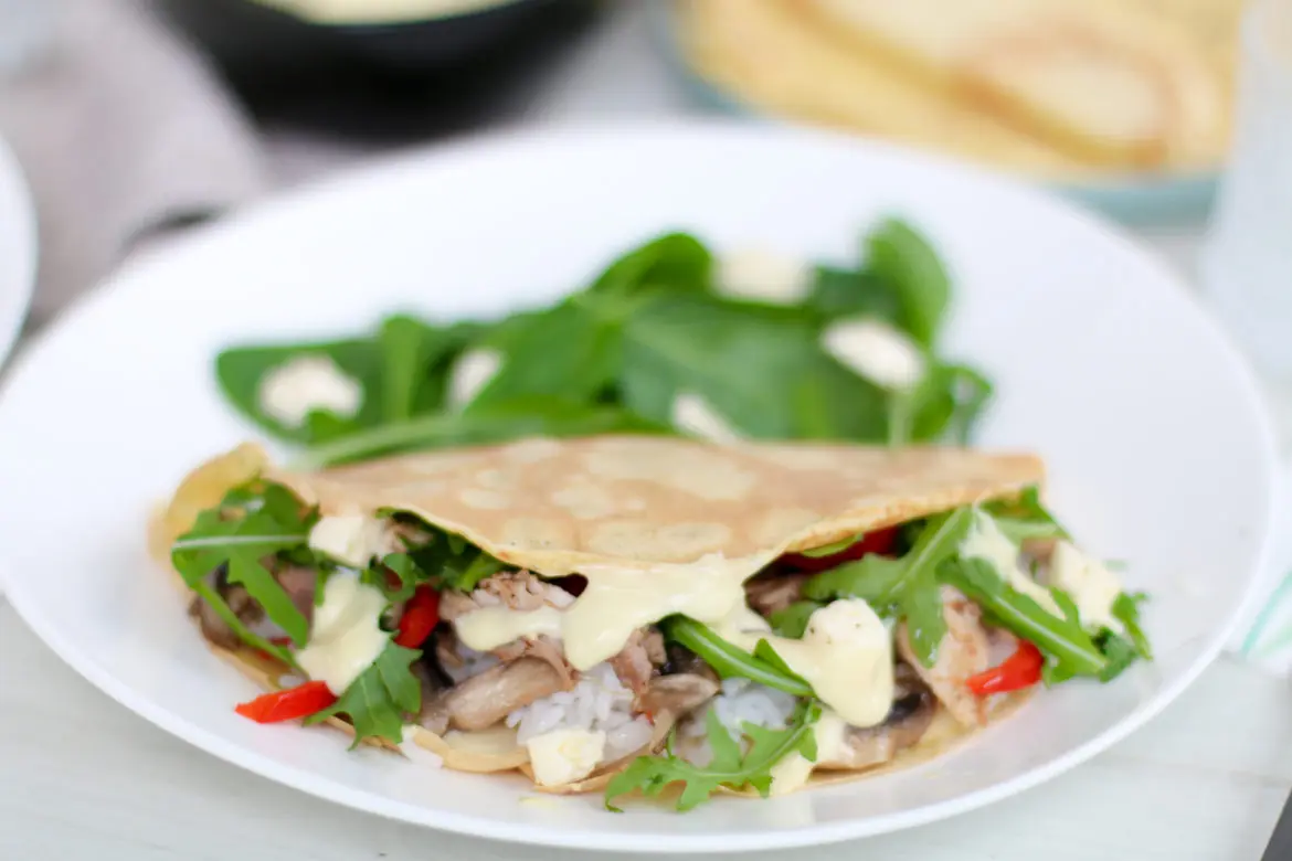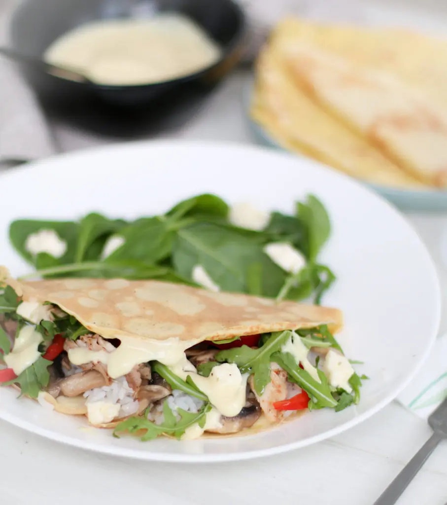 Hér er á ferðinni dásamlega léttur og góður sumarréttur. Hver elskar ekki Crepes eða pönnukökur ? Hér eru þær hins vegar ekki sætar og ömmulegar fylltar með sykri eins og oftast.