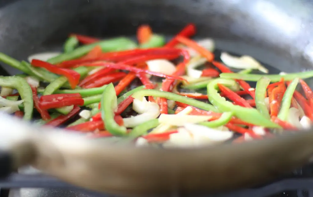 - Hitið olíu á pönnu og setjið allt grænmetið út á við miðlungshita og passið að brenna það ekki við pönnuna bara mýkja