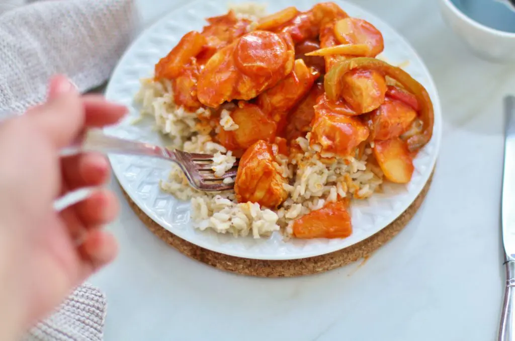 Mér hefur alltaf fundist svínakjöt í súrsætri sósu mjög góður kínverskur réttur. Hins vegar set ég alveg smá spurningamerki við hversu hollur þessi réttur er á kínastöðunum.