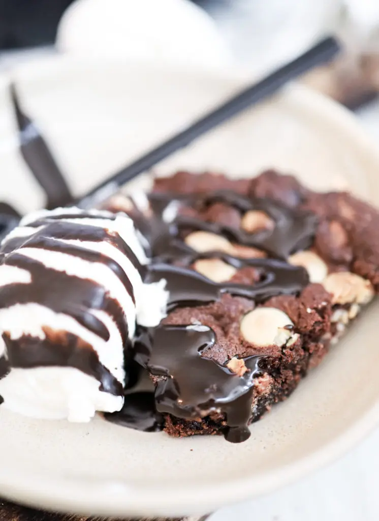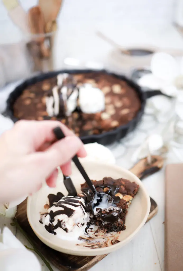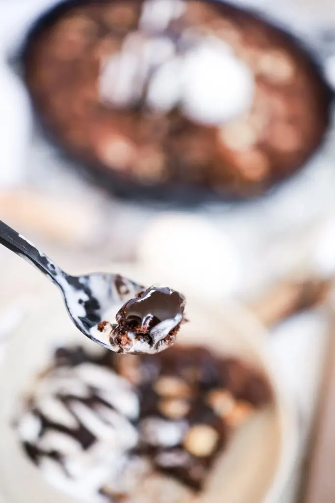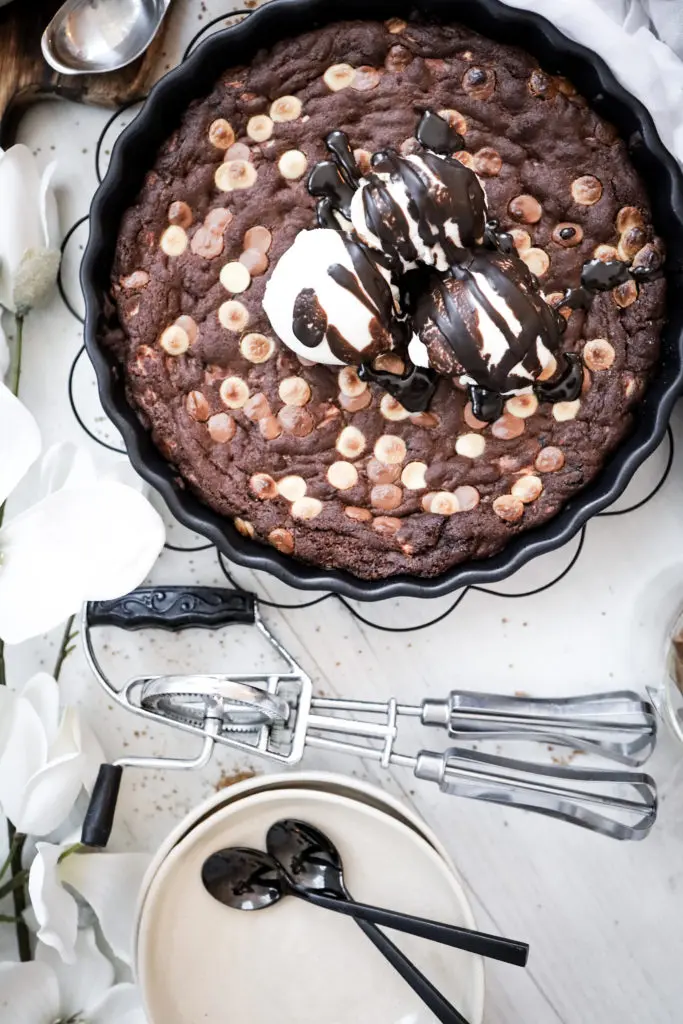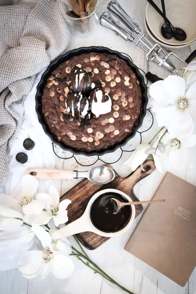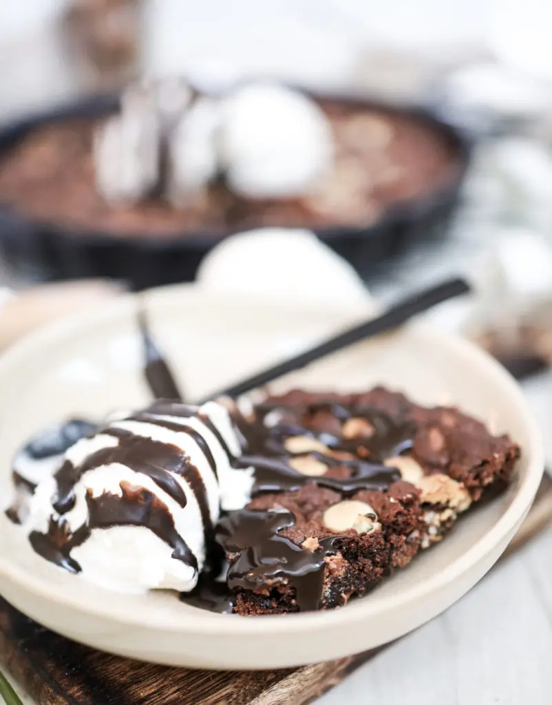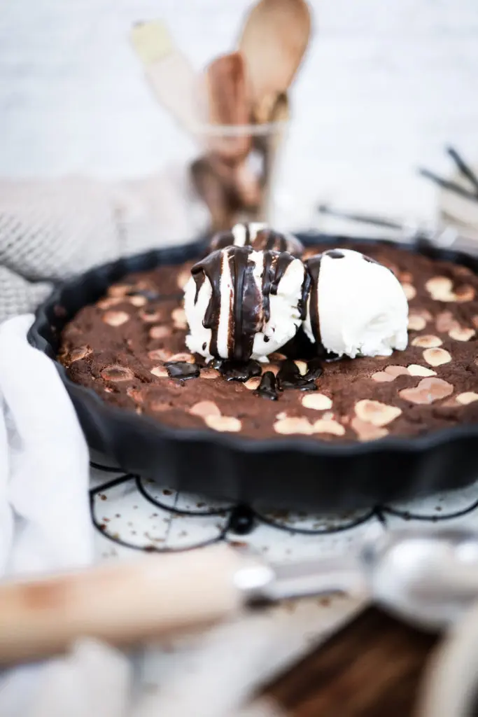 - Best er að bera kökuna fram heita beint úr ofninum með ísnum og heitri sósu