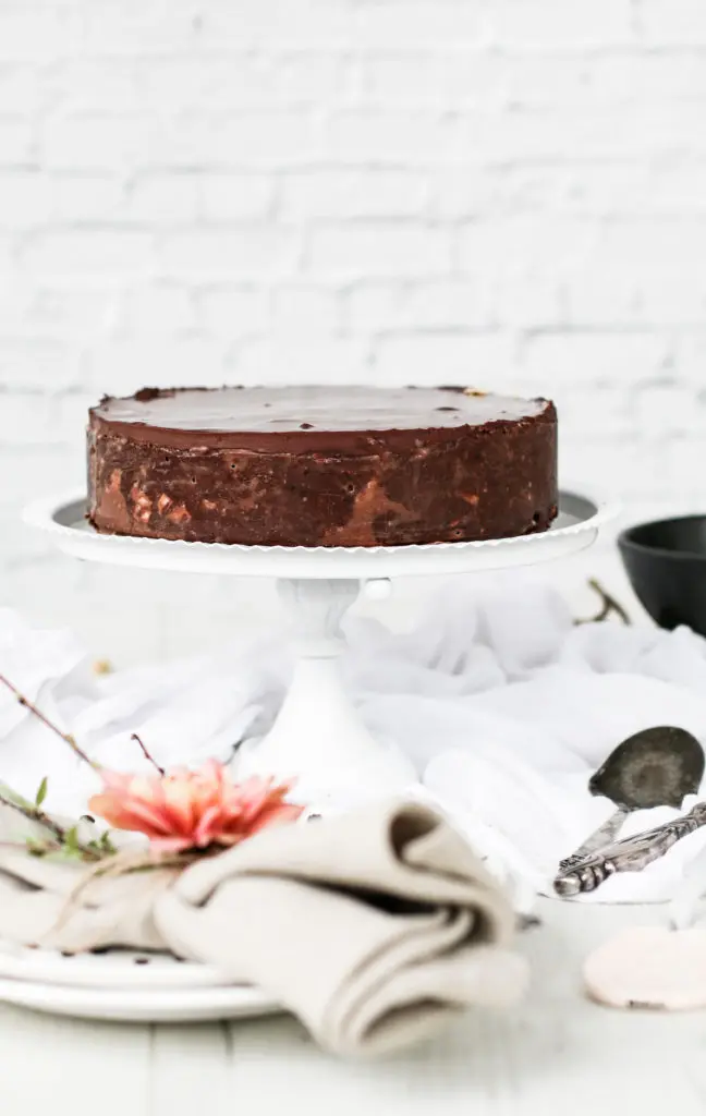- Hellið yfir kökuna og setjið í kæli (ekki frysti) í lágmark 6 klst eða jafnvel yfir nótt