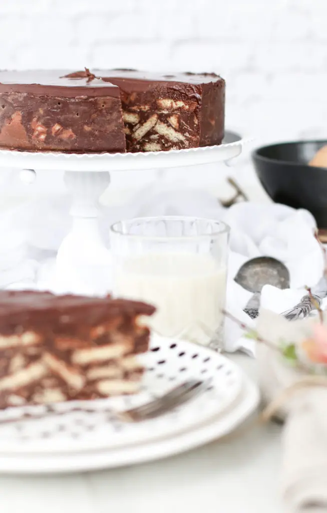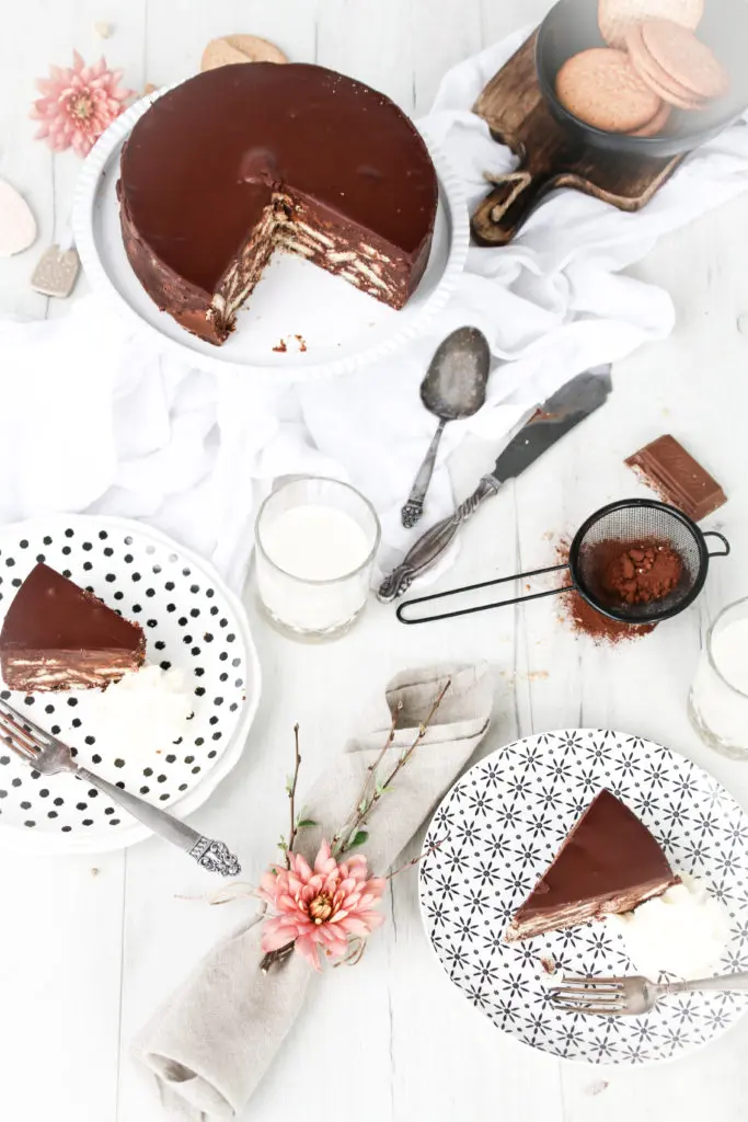 Já og Mcvities Digestive hafrakexið sem er alveg fullkomið í þessa köku til að ná fram þessari skemmtilegu áferð sem hún hefur, dökk með ljósum kex klumpum í.