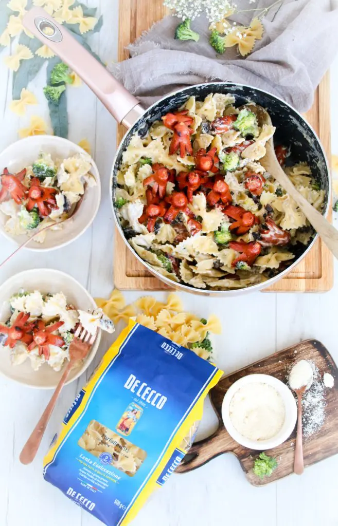 Hér notast ég við De Cecco pasta. Það sem gerir De Cecco pastað sérstakt er að það er koparskorið og hægþurrkað sem gerir það að verkum að áferðin er einstaklega góð.
