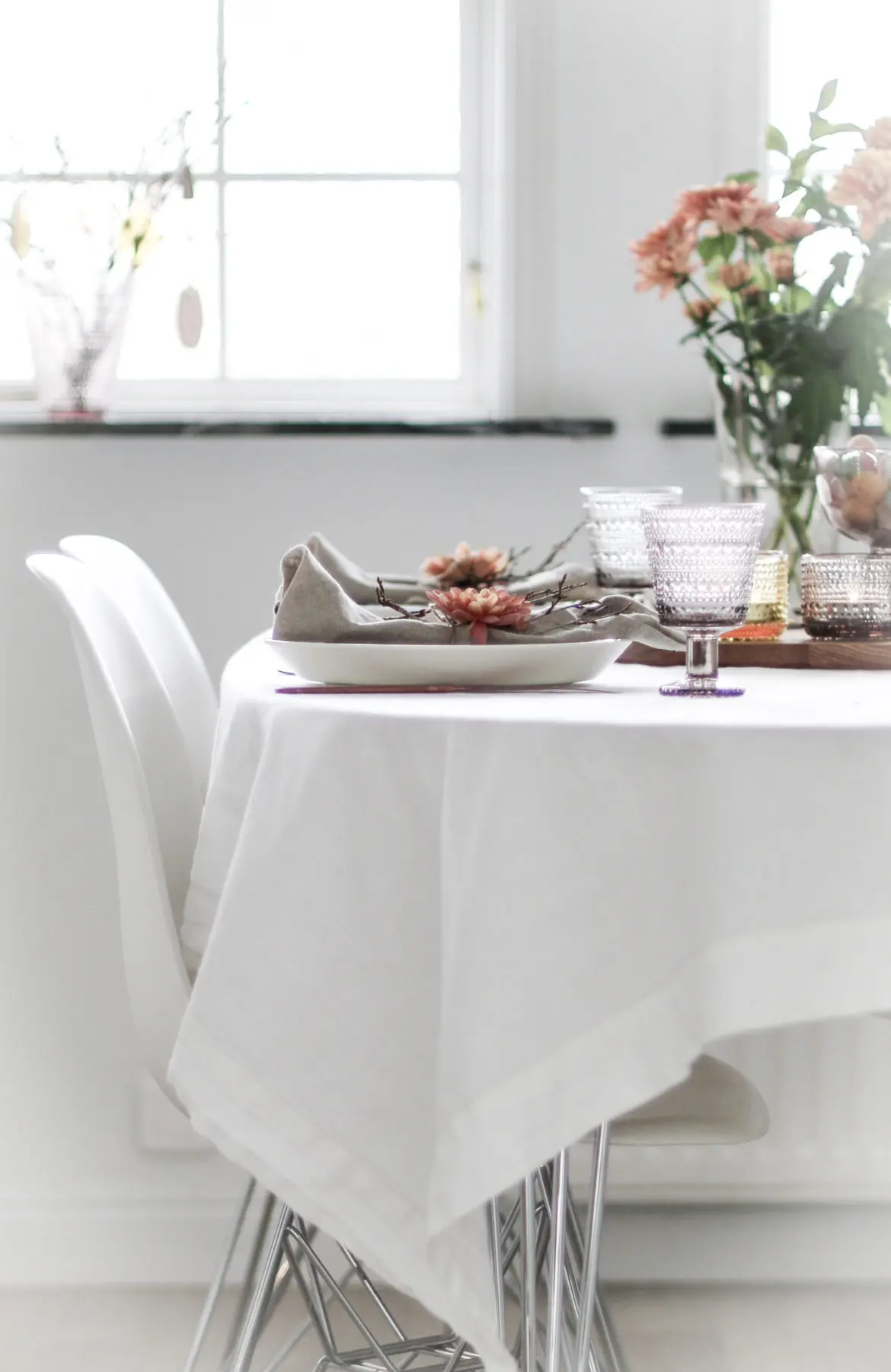 Það þarf alls ekki mikið til að dekka upp fallegt borð, fallegir borðmunir og blóm er allt sem þarf og svo bara raða því upp eins og ykkur þykir fallegt.