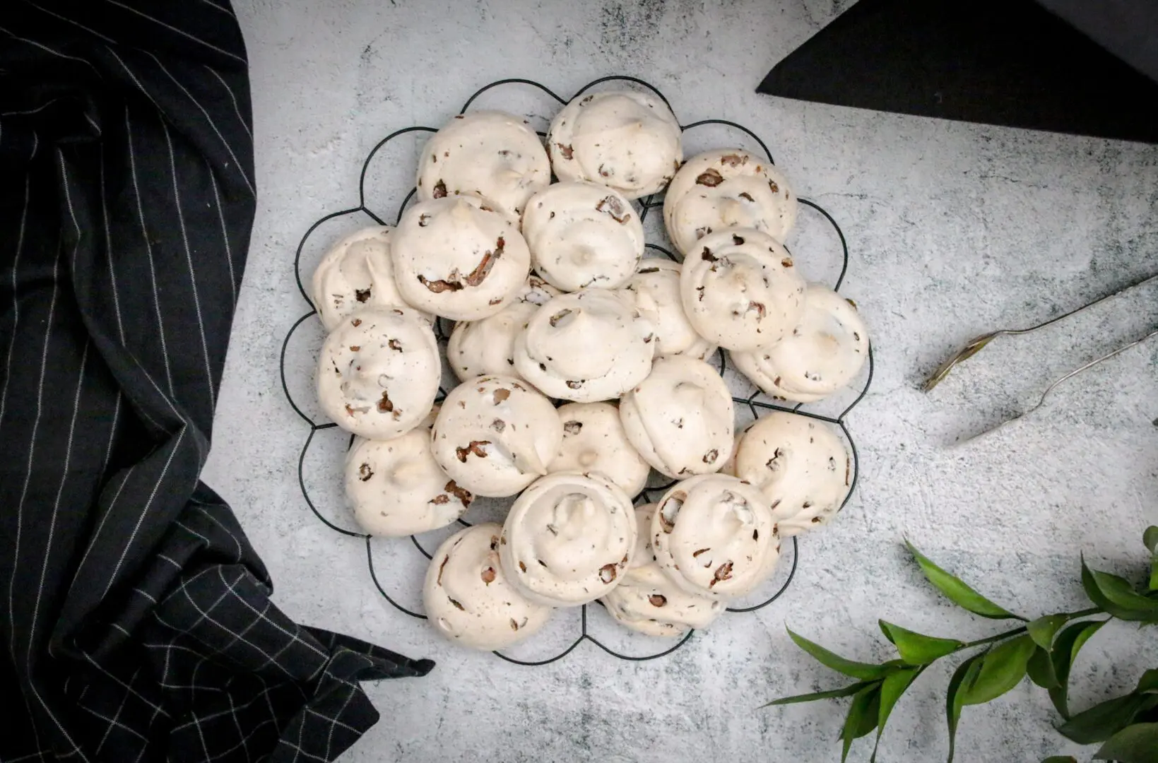 Leyfið toppunum að kólna ögn áður en þið takið þá af bökunarplötunni og færið þá yfir á annað fat. Ef þið reynið að taka þá of snemma þá munu þeir fara í klessu. Mikilvægt er að leyfa þeim að þorna og kólna upp á borði í eins og 15-20 mínútur. Best er svo að geyma toppana ekki í kæli heldur í krukku eða boxi upp á borði svo þeir haldist dúnamjúkir.