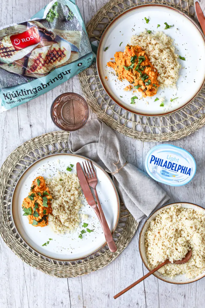 Það hráefni sem ég á oftast til heima eru Rose Poultry kjúklingabringur, Philadelphia rjómaostur og gulrætur og því ekkert mál að hreinlega henda bara í hann enda bara örfá hráefni sem þarf.