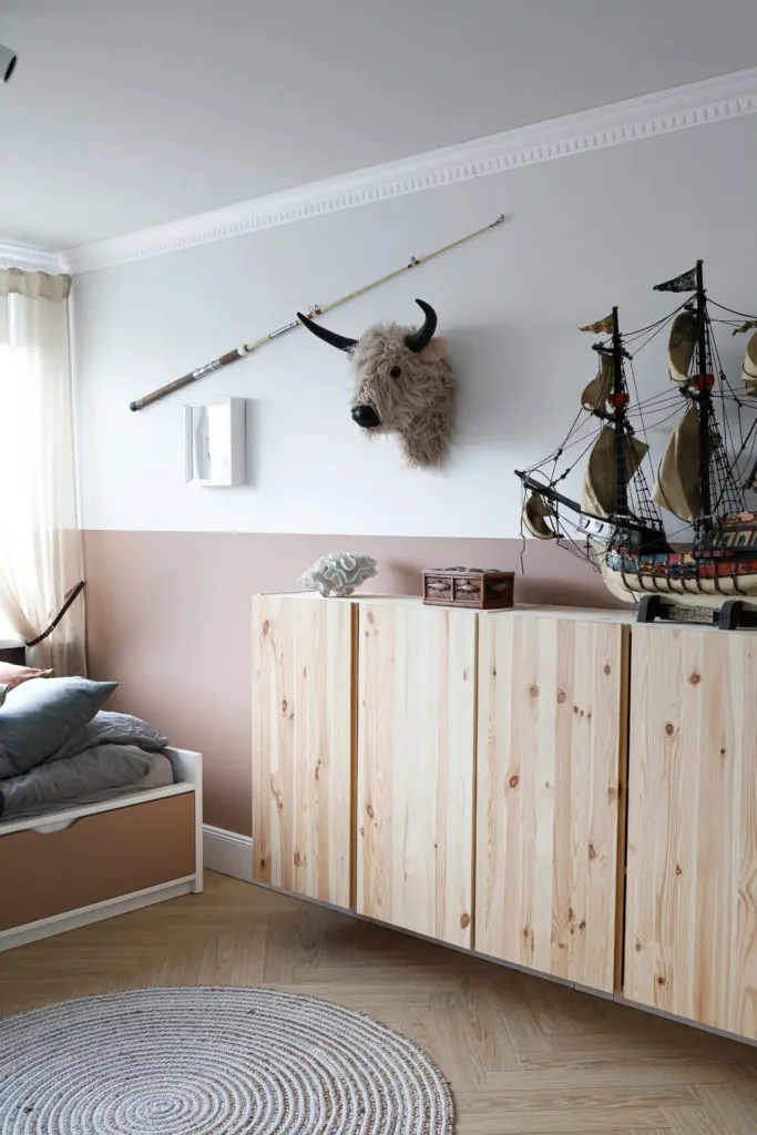 Ég hefði persónulega valið að hafa herbergið öðruvísi en mér finnst bara svo mikilvægt að herbergi barnanna endurpegli bæði persónuleika þeirra sem og áhugamál og því vað þetta útkoman á hans herbergi.