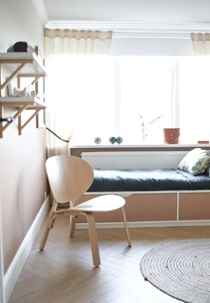 Ég leyfi myndunum bara að tala sínu máli en við erum alsæl með þennan hlýja leirlit sem við völdum á herbergið og húsgögnin.