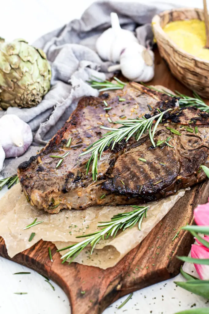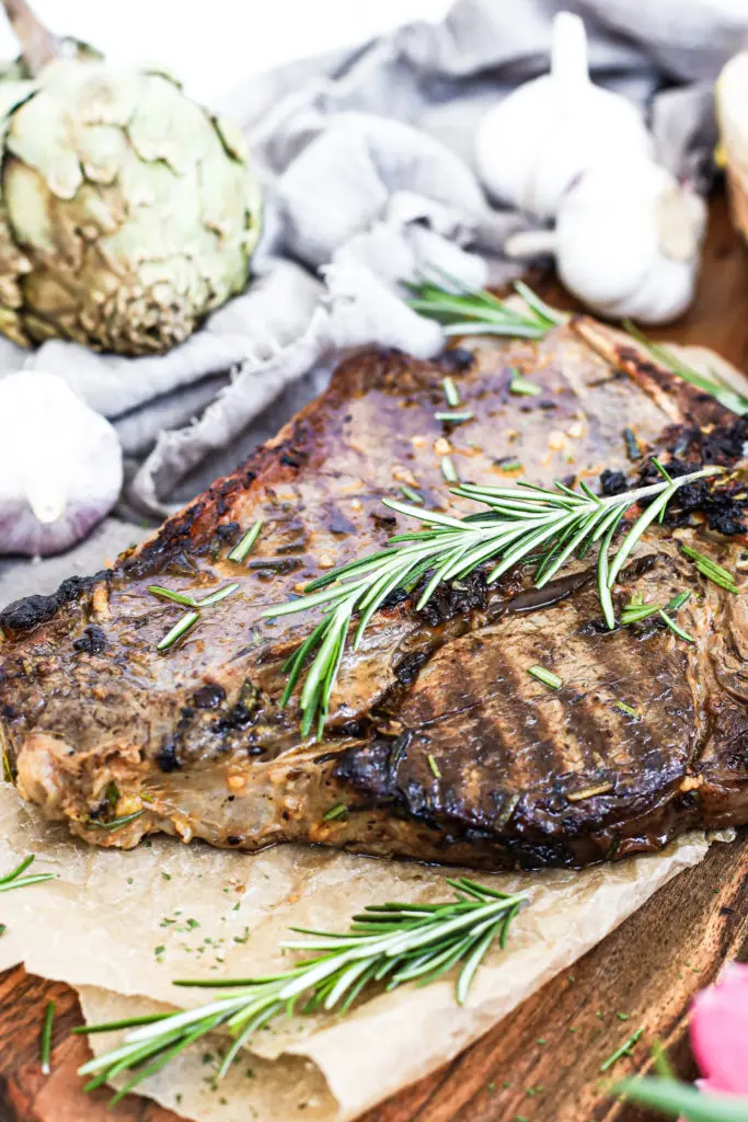 Hér nota ég góða væna T-bone steik, en það má vel nota aðra tegund af nautakjöti í þessa marineringu, gott er að leyfa kjötinu að marinerast minnst í 1 klst, því lengur því betra.