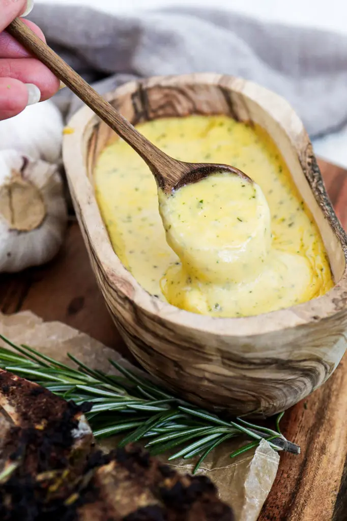 - Bræðið saman smjör og nautakraft í örbylgju ofni