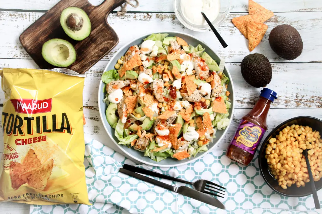 Hér notaði ég nýja nachoið frá Maarud og það kom vel út enda vel kryddað og gaf salatinu kikk með góða ostabragðinu sínu.